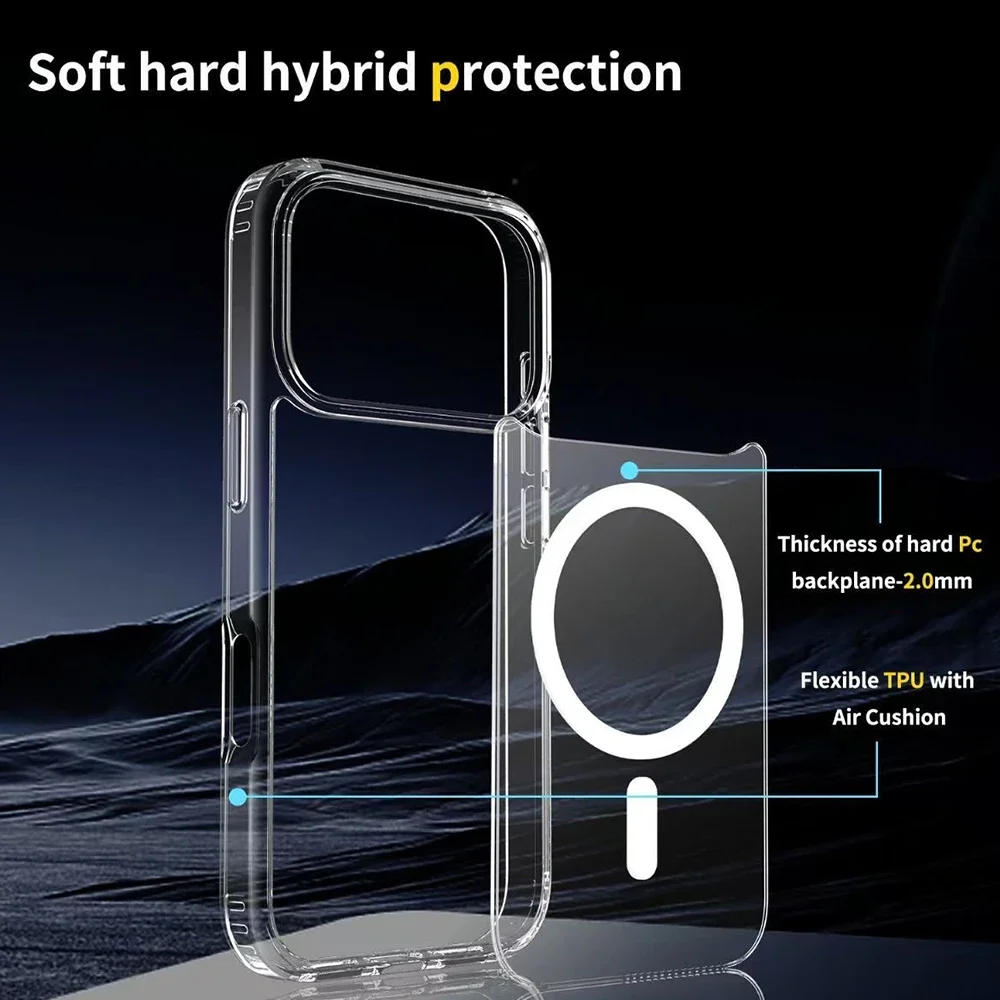 Funda de teléfono con protección magnética para iPhone 17/ 17Pro/17 Air/17Pro Max, cubierta transparente MagSafe magnética de grado transparente a prueba de golpes