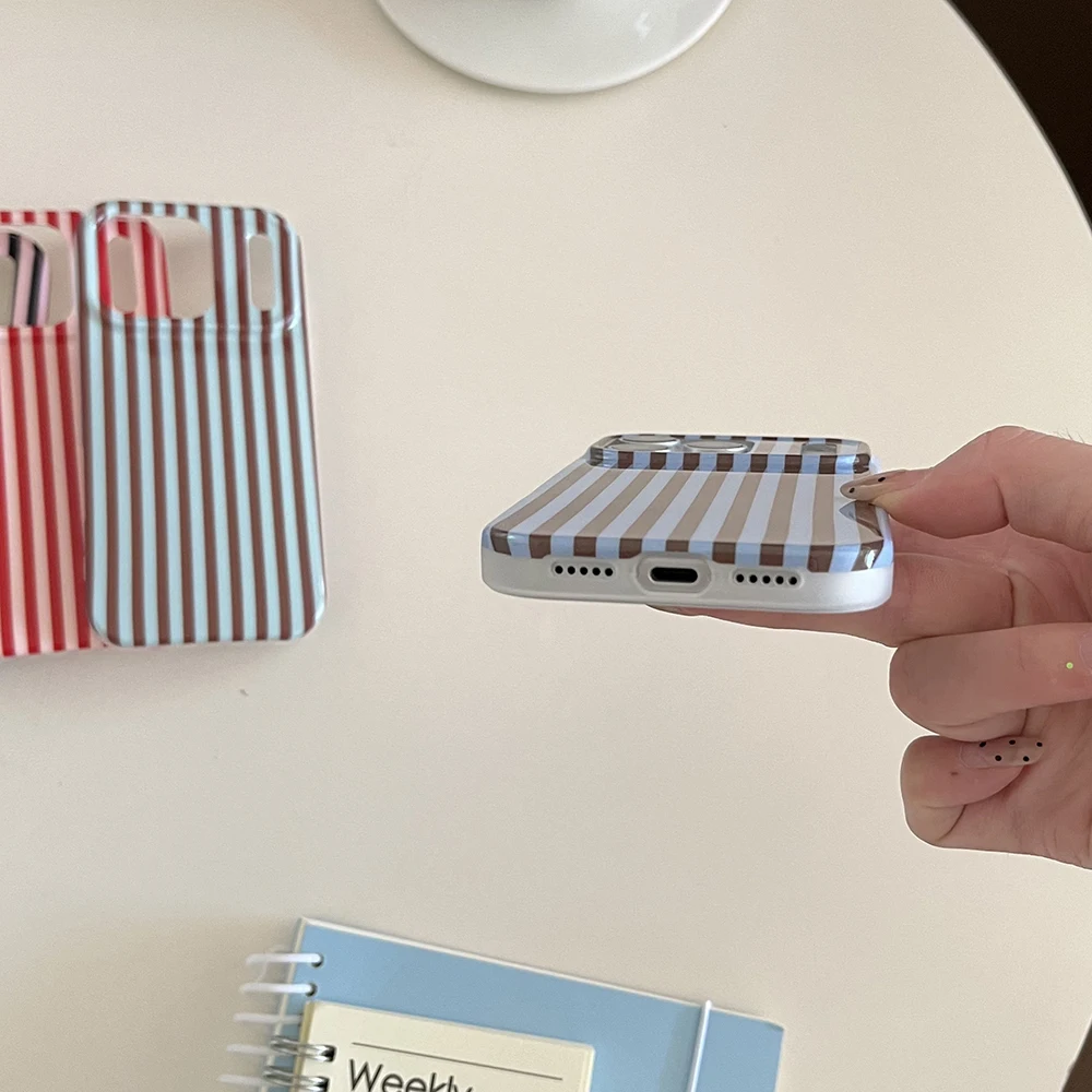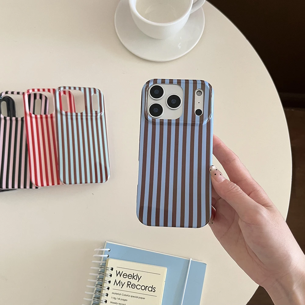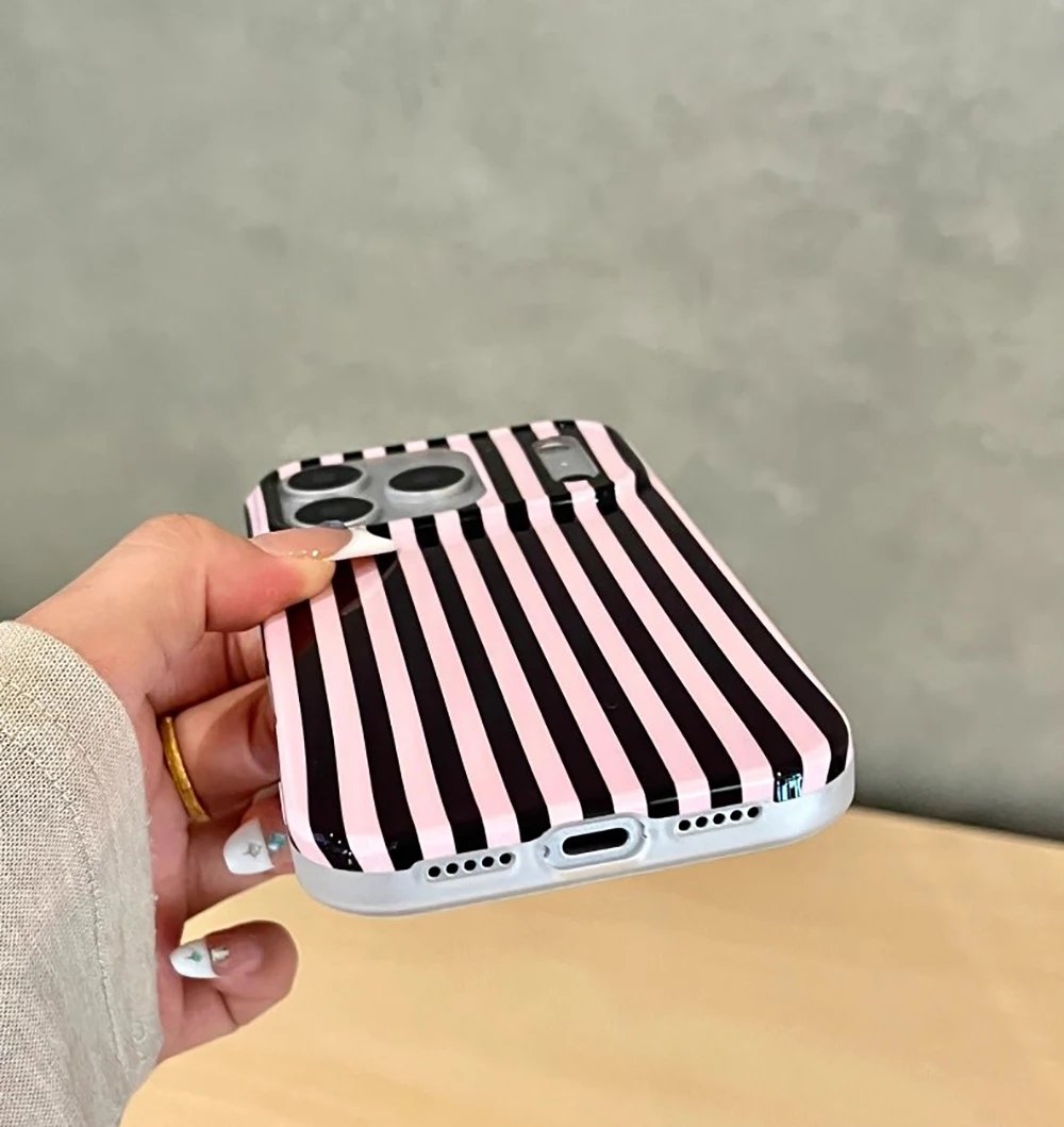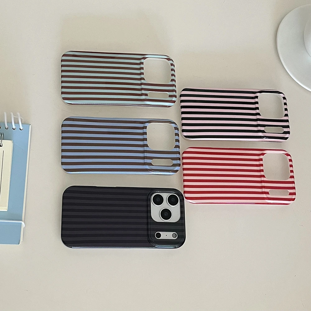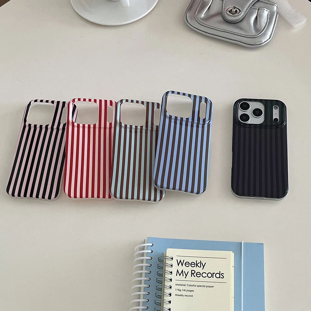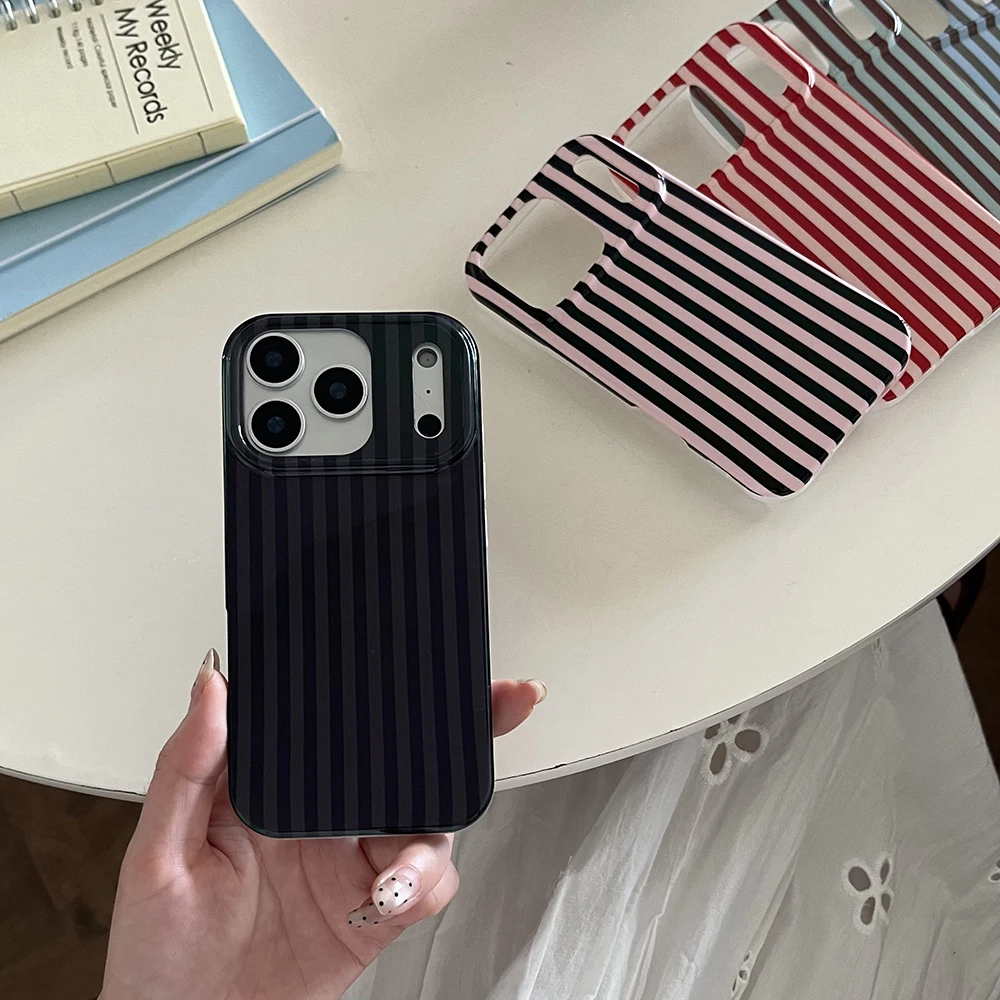 Funda de teléfono a prueba de golpes para IPhone 14 15 16 17 Pro Max con empalme de rayas simples, cubierta trasera protectora a prueba de golpes