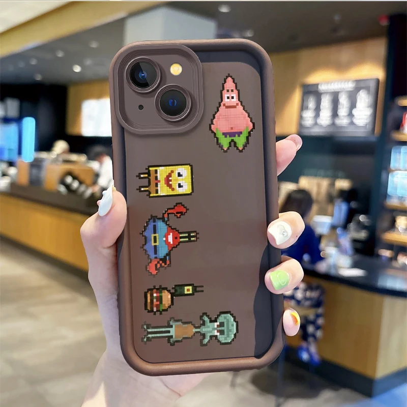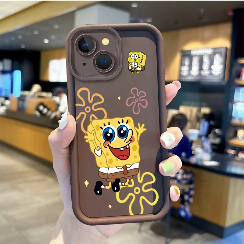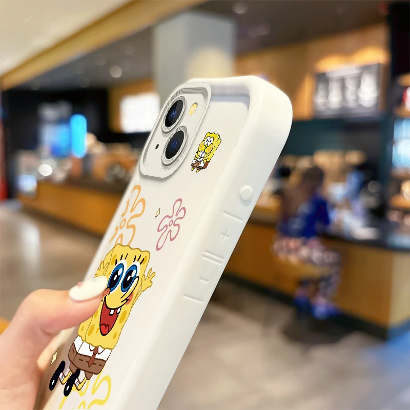 Funda de teléfono a prueba de polvo de Bob Esponja de dibujos animados para iPhone 15 14 13 12 11 Pro Max 15 14 8 7 6 Plus X XS Max 8 7 6, funda antideslizante de silicona
