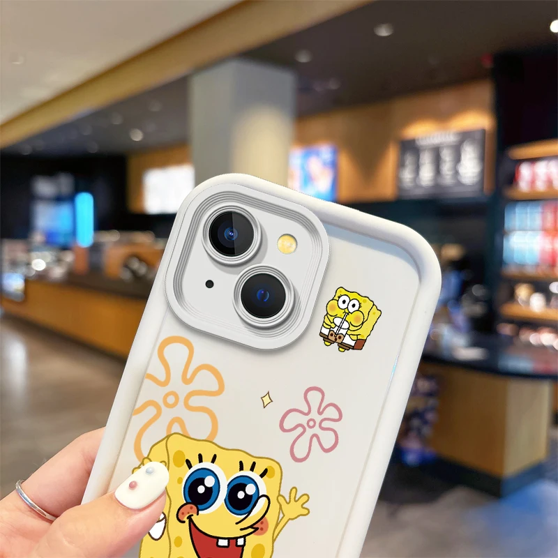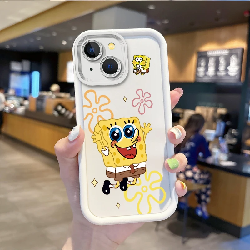 Funda de teléfono a prueba de polvo de Bob Esponja de dibujos animados para iPhone 15 14 13 12 11 Pro Max 15 14 8 7 6 Plus X XS Max 8 7 6, funda antideslizante de silicona