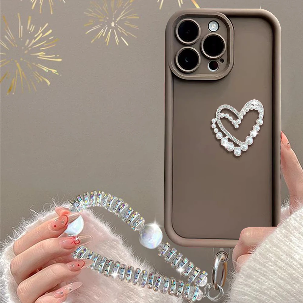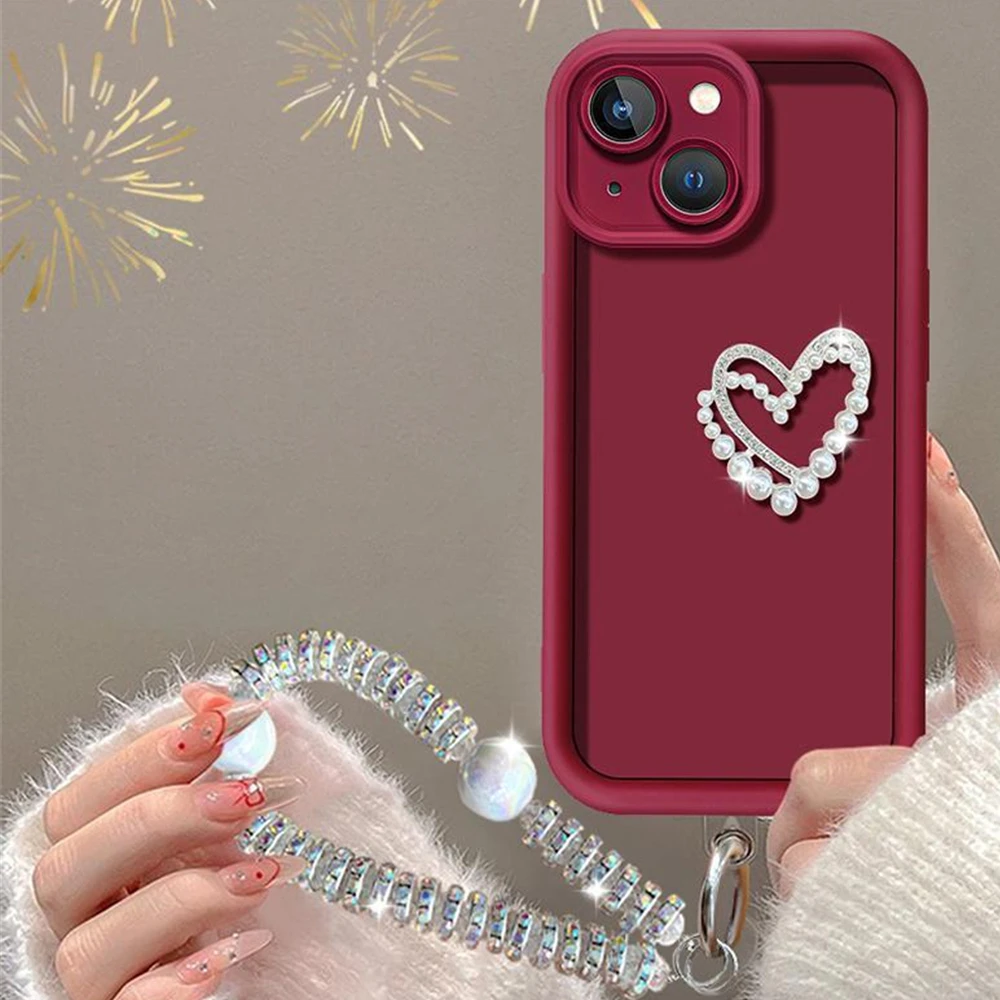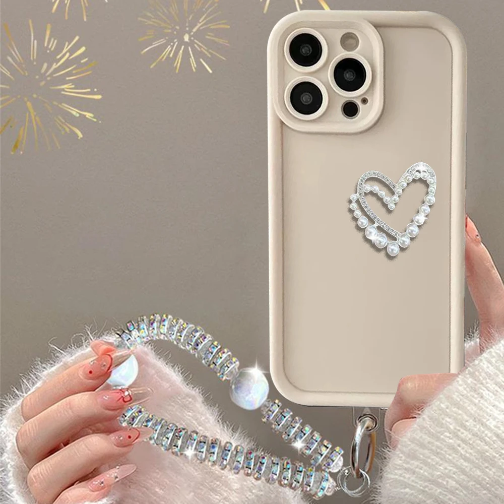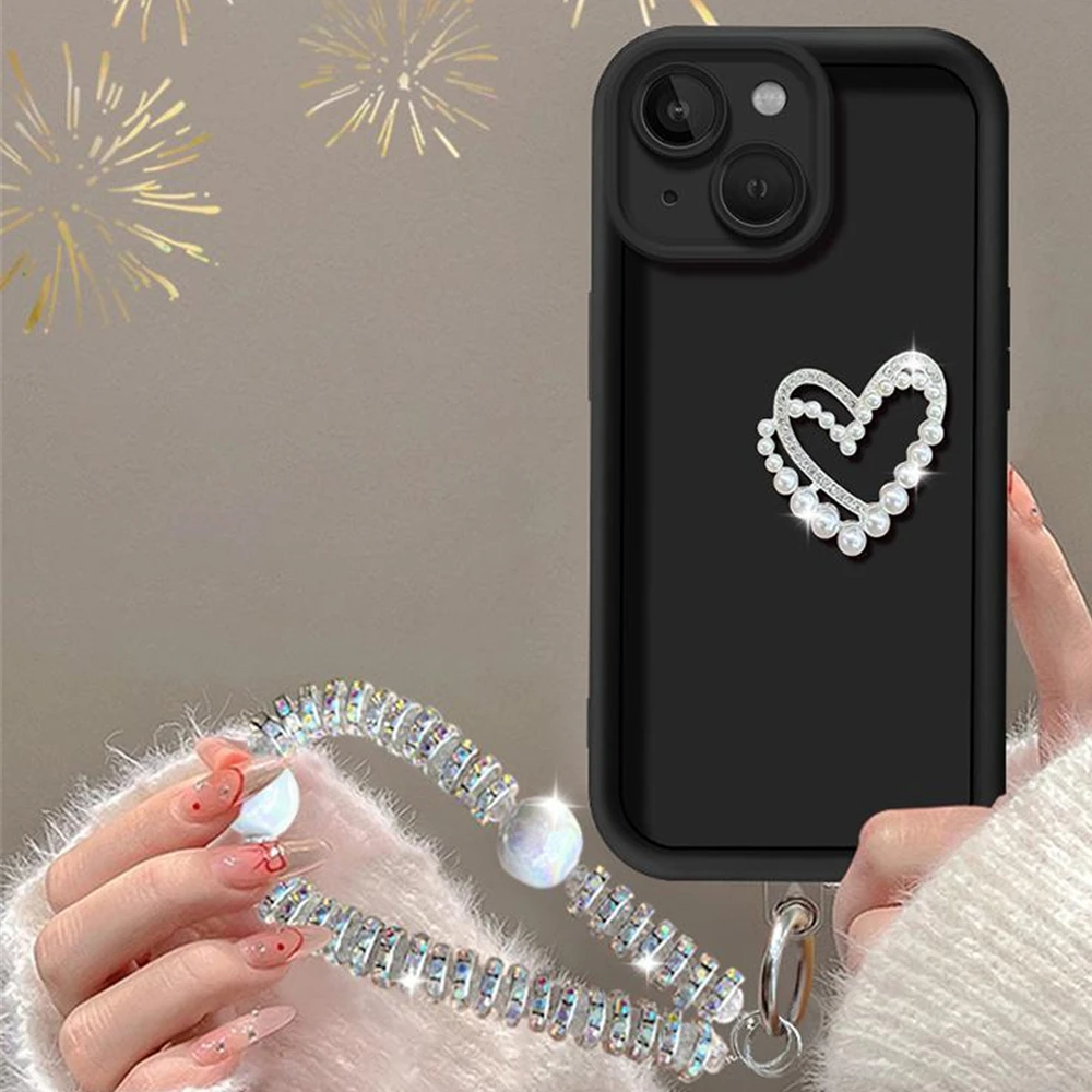 Funda de teléfono con pulsera de corazón de amor 3D para Motorola MOTO Edge 50 Fusion Edge 50 Neo Edge 50 Pro Ultra Diamond, cadena de muñeca, cubierta suave