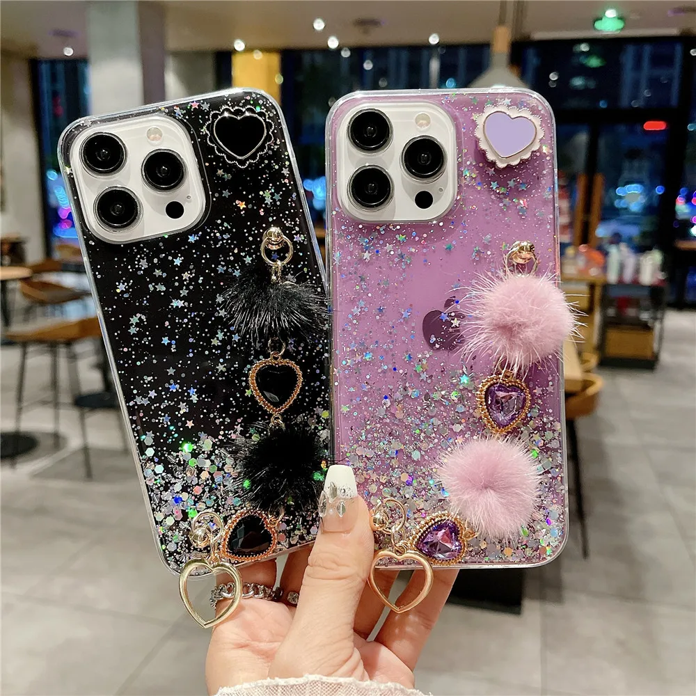 Funda de teléfono con pulsera de felpa y corazón de amor de lujo para Xiaomi Redmi Note 11 11S 10 9 Pro 10S 9S 10A 10C 11 Lite 11T POCO X3, funda blanda