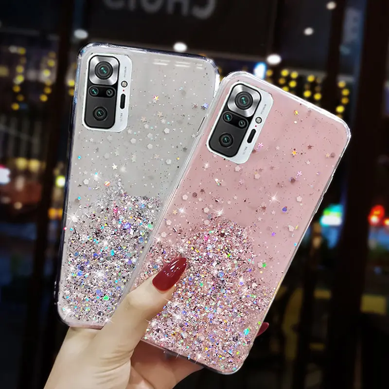 Comprar Funda de teléfono con purpurina brillante para Xiaomi Redmi note 10, 9, 8Pro, 11, 10, 10T, POCO X3, NFC, K30, K40, 9, 9A, Note11, 12 Pro