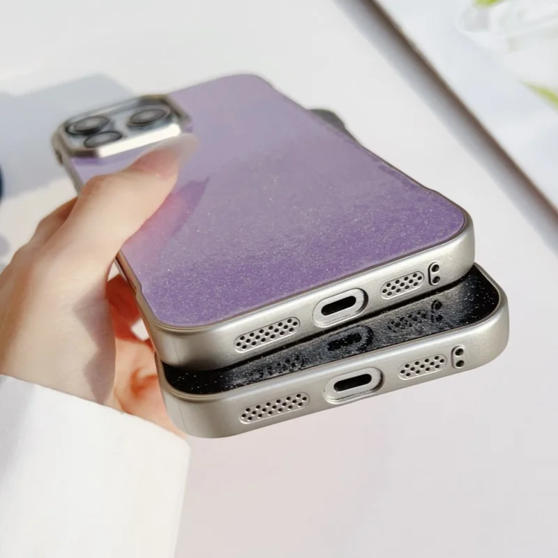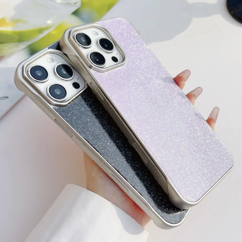 Funda de teléfono con brillo ostentoso y sin bordes, revestimiento de lujo, sin bordes Starlit Sky, funda protectora de cuero para iPhone 16 15 14 Plus 12 11 13 Pro Max