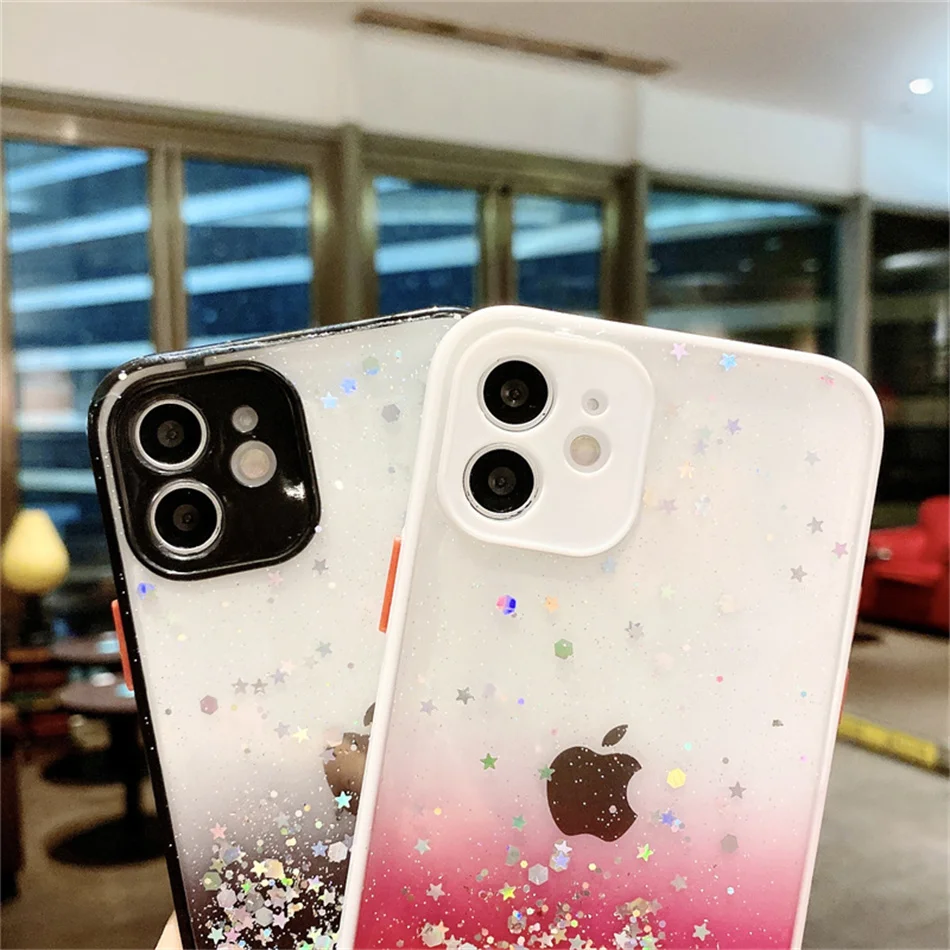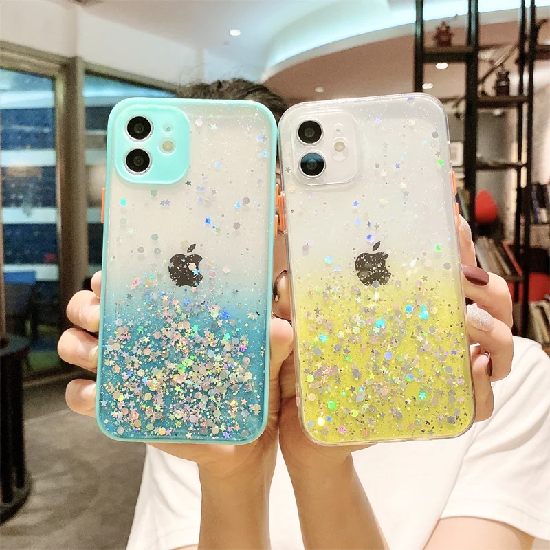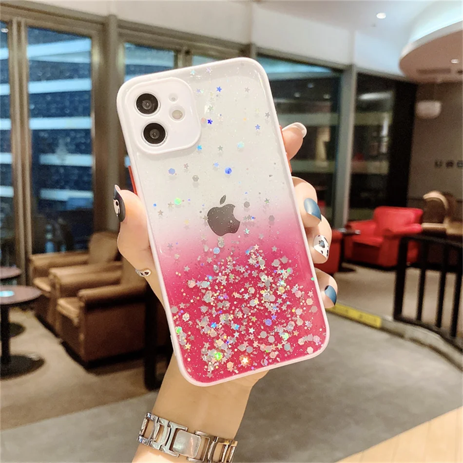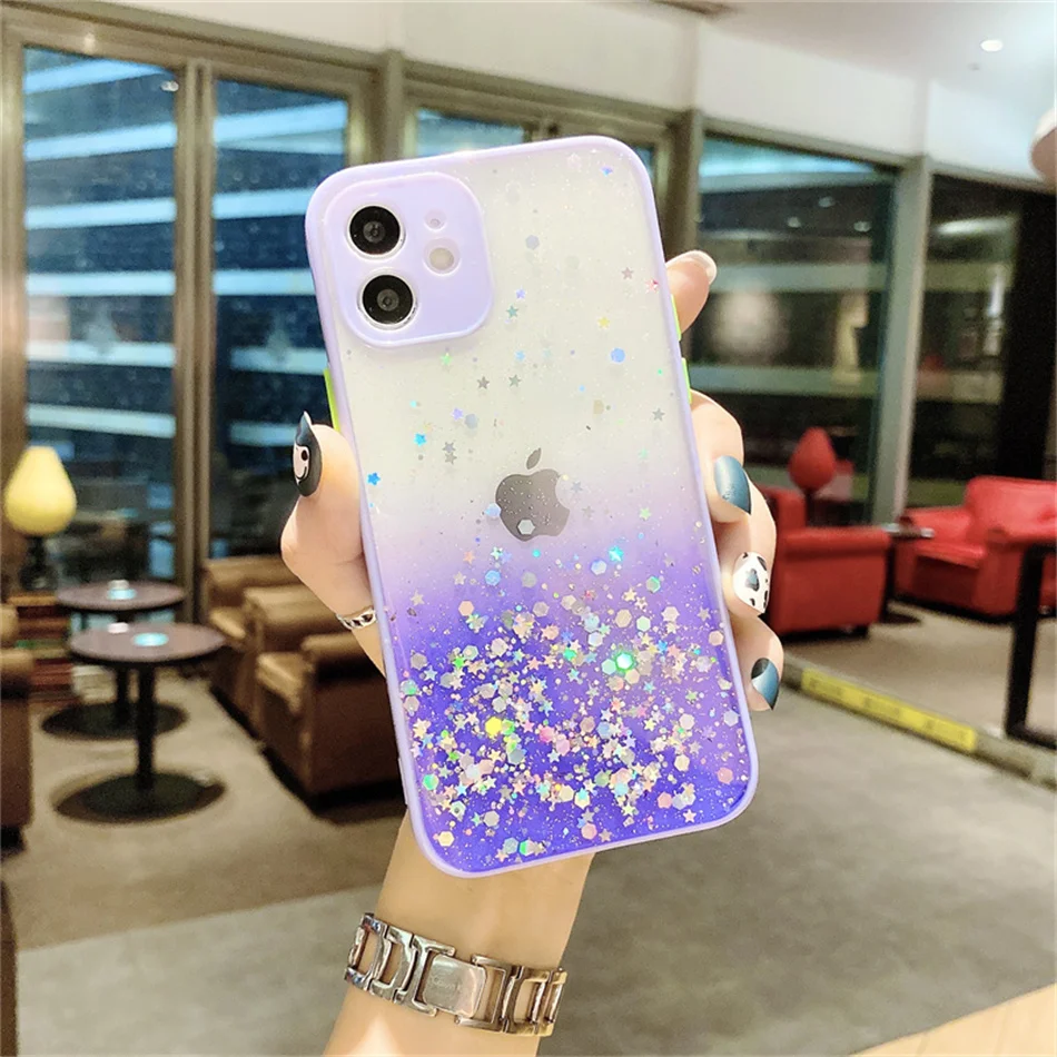 Comprar Funda de teléfono con purpurina colorida de lujo para iPhone 11 Pro Max XR XS Max 7 8 Plus 12 Mini, carcasa trasera transparente encantadora a la moda