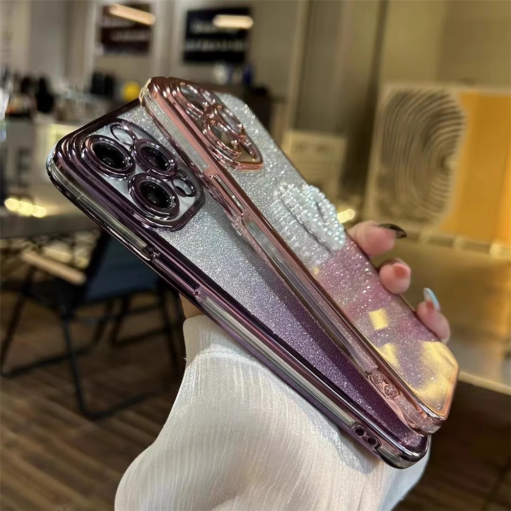Funda de teléfono con purpurina y corazón de amor y perlas 3D para Samsung S25 S24 S23 Ultra S21 S22 Plus S20 FE S10, funda trasera de silicona suave a prueba de golpes