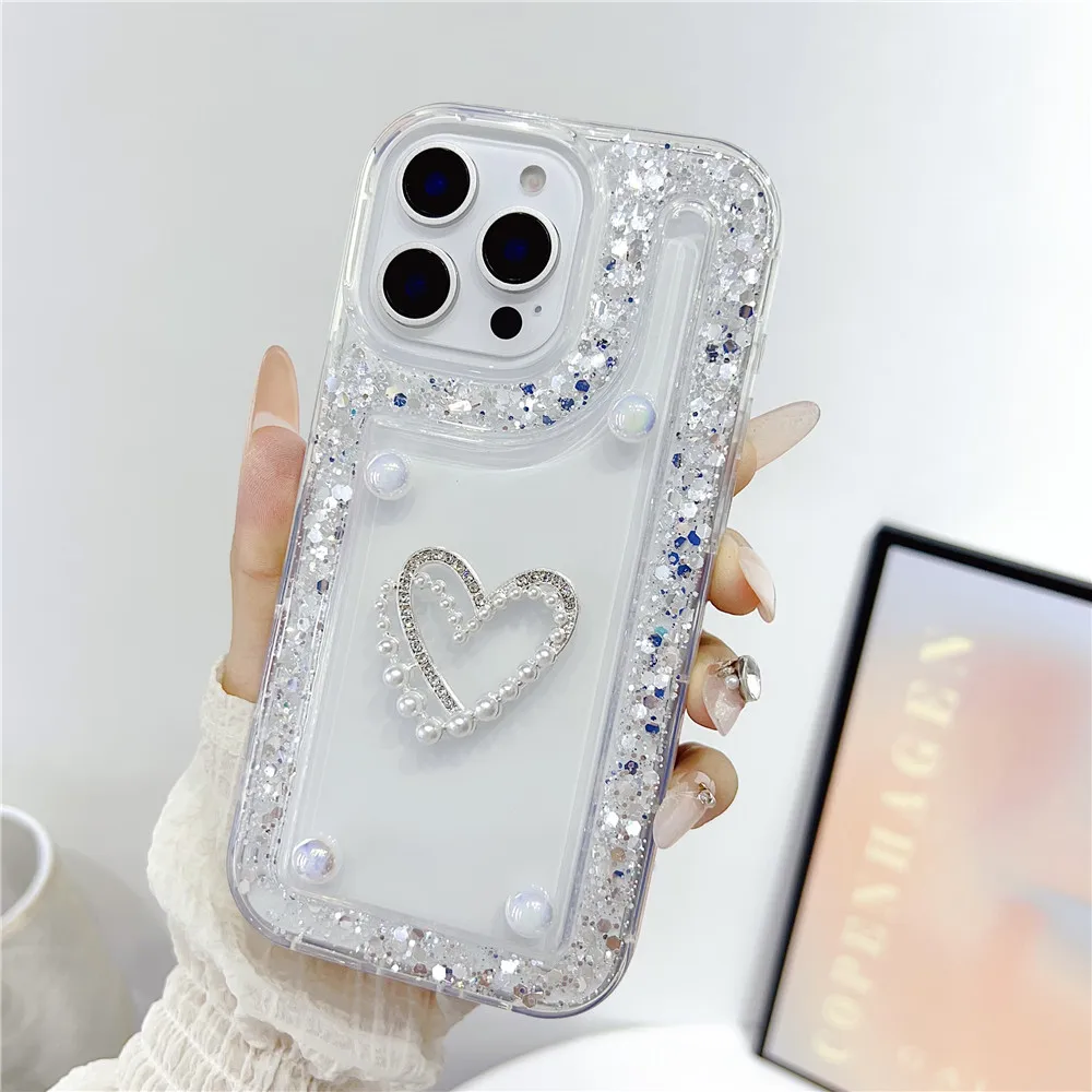 Funda de teléfono con purpurina y corazón de perla 3D para Xiaomi Redmi Note 14 13 Pro 4G 5G Plus 12 11 10 11S 10S, funda trasera de silicona suave a prueba de golpes