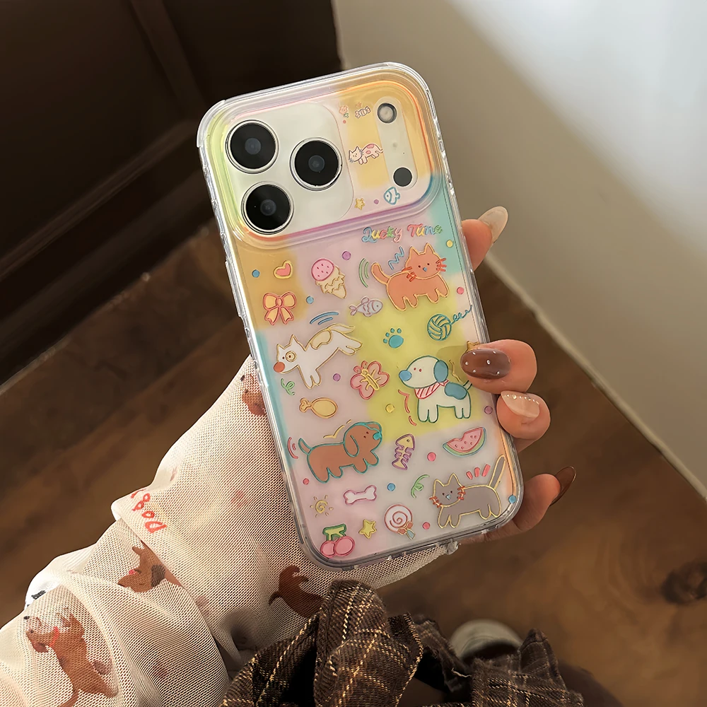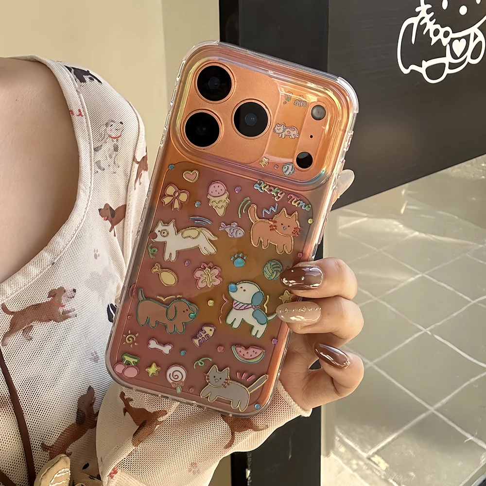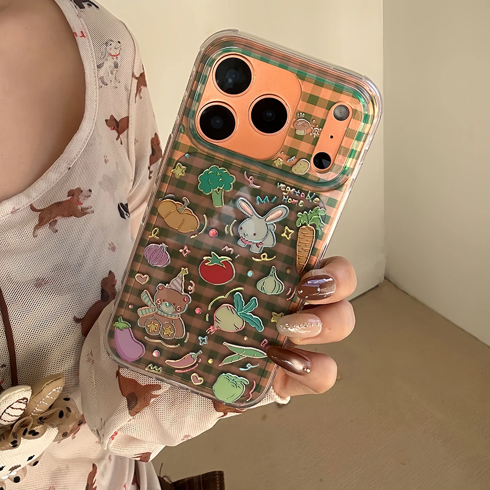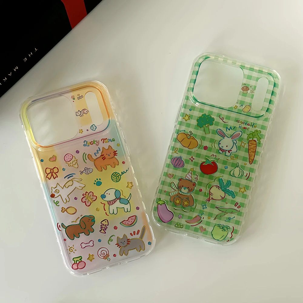 Funda de teléfono con purpurina láser de dibujos animados, diseño de rejilla verde y Animal bonito para iPhone 13 14 16 15 17 Pro 17ProMax, funda transparente a prueba de golpes