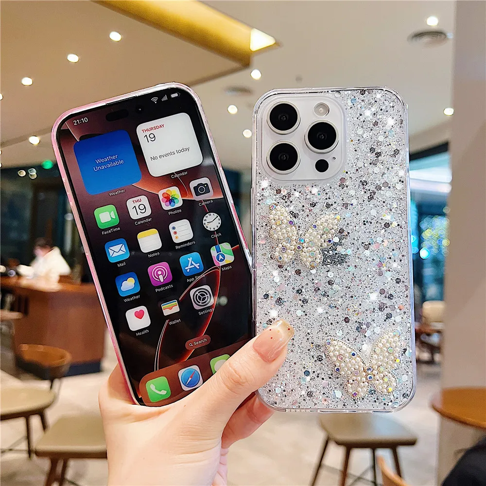 Funda de teléfono con purpurina de mariposa 3D OPPO Reno 13F 11F 12F 12 11 10 Pro A53S A53 A5 A9 2020 A52 A72 4G, funda de silicona suave a prueba de golpes