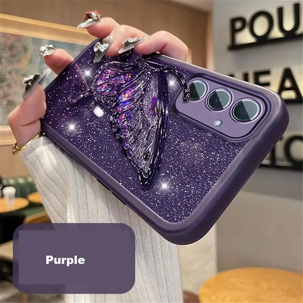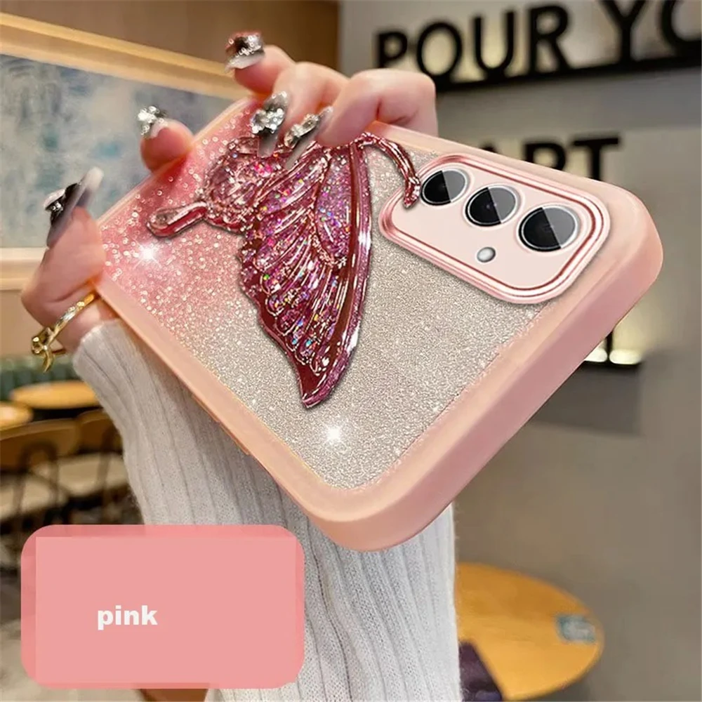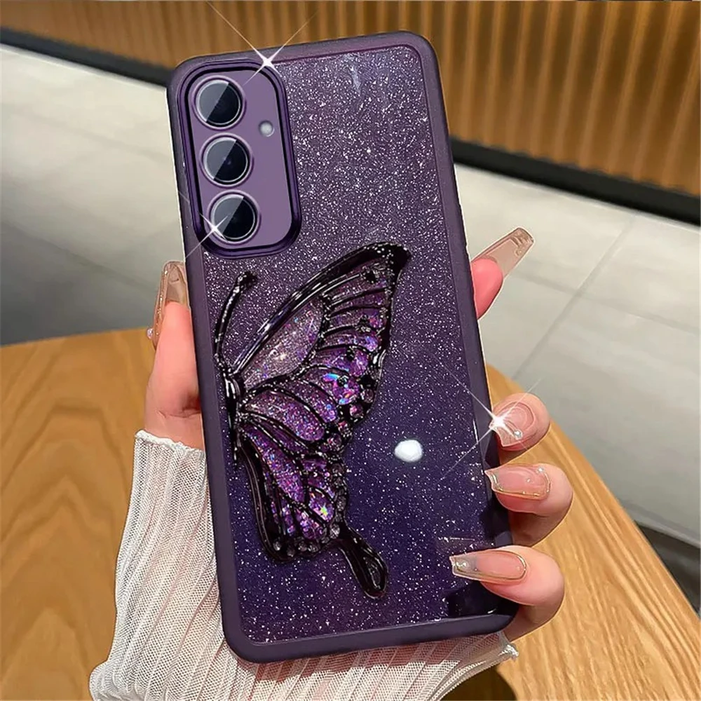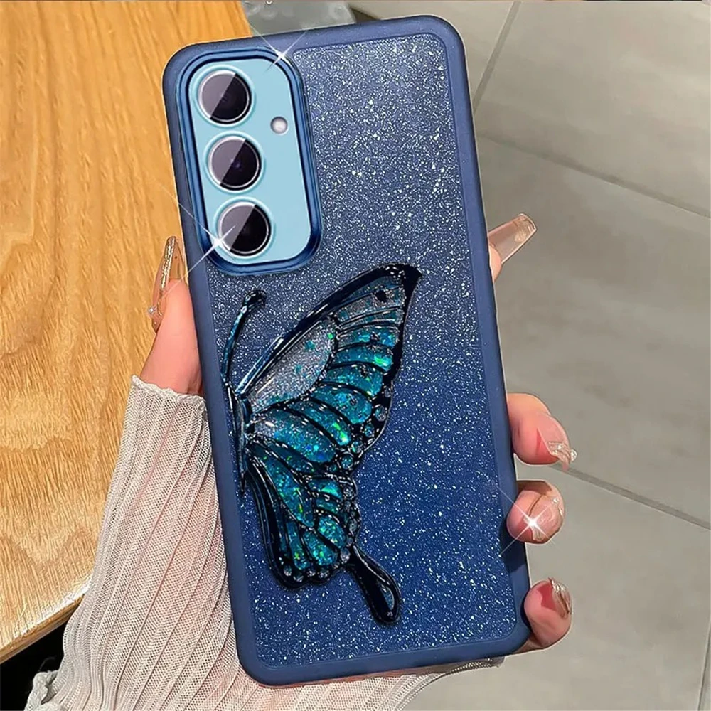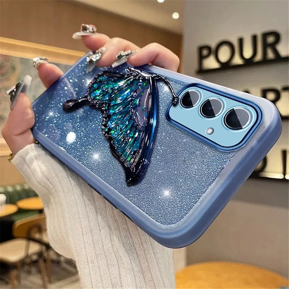 Funda de teléfono con purpurina y mariposa de arena movediza para Xiaomi Poco X7 X6 F7 M7 Pro M6 F6 X5 X3 NFC POCO C65 C75 soporte funda de silicona suave