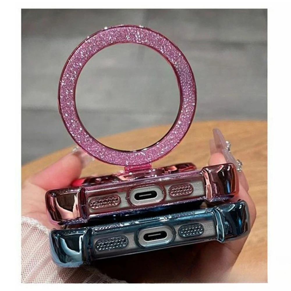 Funda de teléfono con purpurina y soporte de espejo de pulsera de cristal para Xiaomi Redmi Note 14 15 Pro Plus 15 15C 14C 14S 4G 5G, funda a prueba de golpes