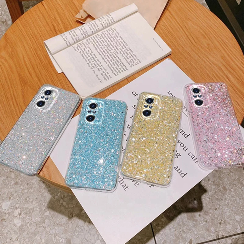 Comprar Funda de teléfono con purpurina para Xiaomi Redmi 10, funda suave para Mi 11 Lite, POCO X3 Pro, F3, Redmi Note 10 Pro, 10S, 9, 9S, 9A, 9C