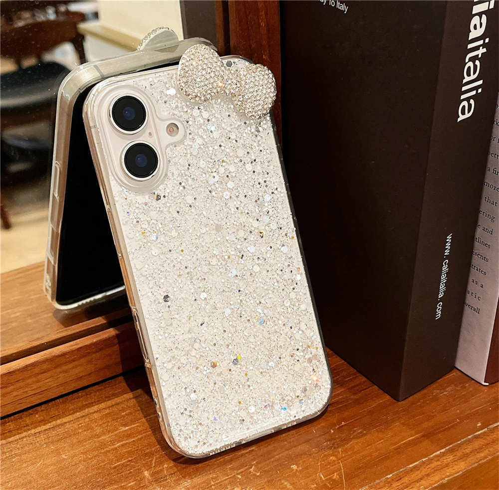 Funda de teléfono con purpurina y lazo de diamante Flash 3D para Samsung Galaxy S24 S25 S23 S22 S21 Ultra Plus S20FE Note 20 Funda ostentosa de lujo
