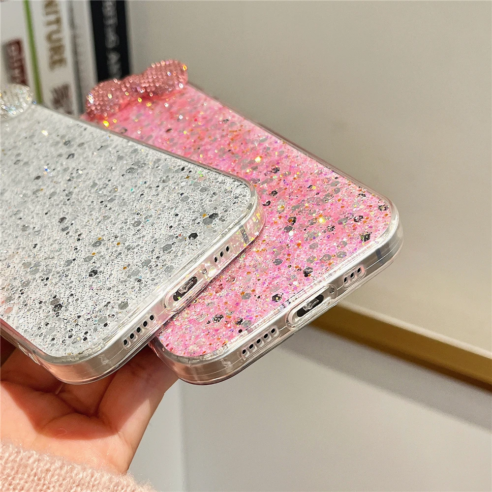 Funda de teléfono con purpurina y lazo de diamante Flash 3D para Samsung Galaxy S24 S25 S23 S22 S21 Ultra Plus S20FE Note 20 Funda ostentosa de lujo