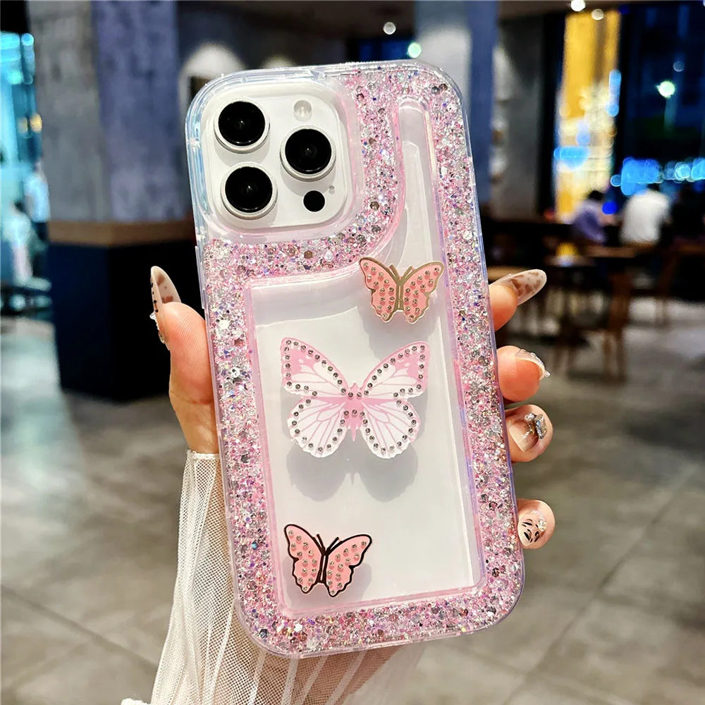 Funda de teléfono con purpurina de mariposa y diamantes para Xiaomi Redmi Note 14 13 Pro 4G 5G Plus 12 11 10 11S 10S funda de silicona suave a prueba de golpes