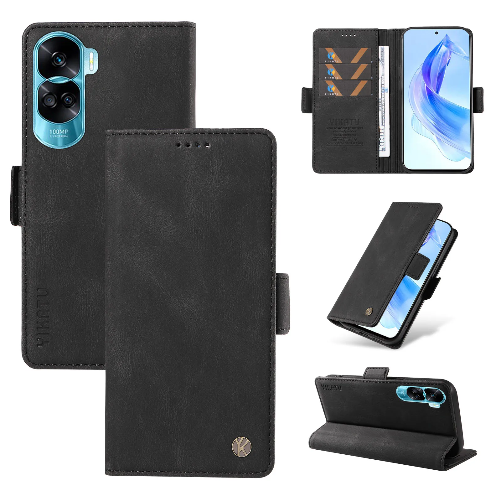 Comprar Funda de teléfono con ranura para tarjetas magnéticas, Cartera de cuero con tapa para Honor 90 Pro 70 50 Mate 60 P30 Lite, bolsillo ultrafino