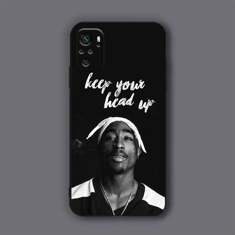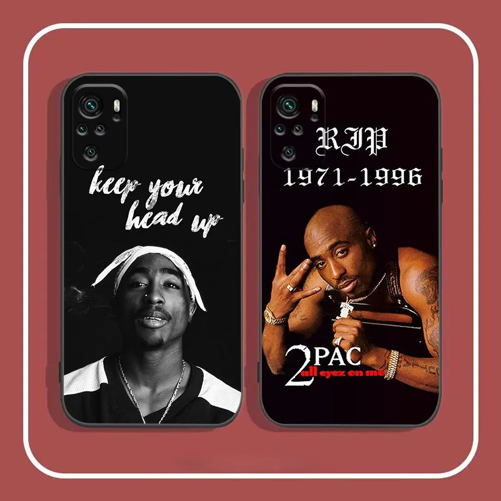 Rapero 2Pac cantante TupacFunda de teléfono para Xiaomi RedmiNote 12T URBO 12 12S 11 11T 11S 10 10S 9 9T 9S 8 8T PRO PLUS 4G 5G Fundas Negro Silicona suave a prueba de golpes Funda Coque Shell Capa