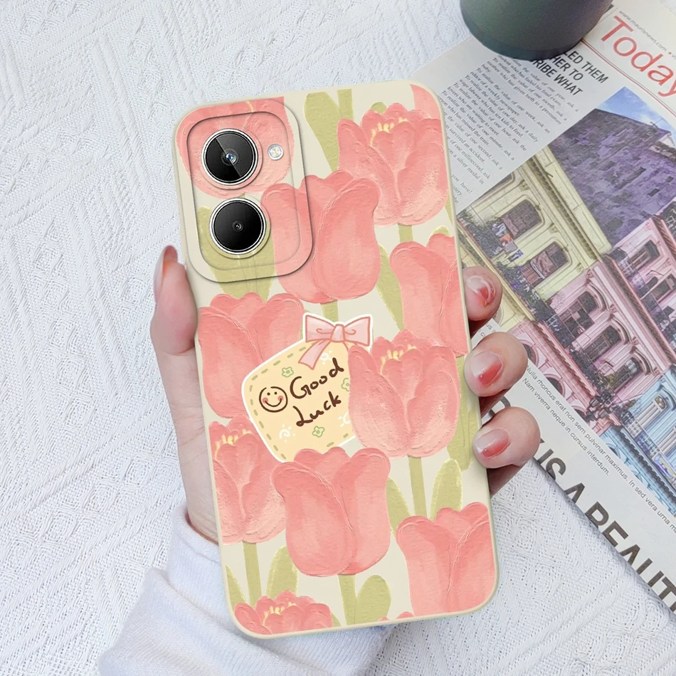 Funda de teléfono para OPPO Realme10 10Pro + Plus, funda de silicona líquida suave con pintura al óleo, cobertura cuadrada, parachoques para OPPO Realme10 10Pro +