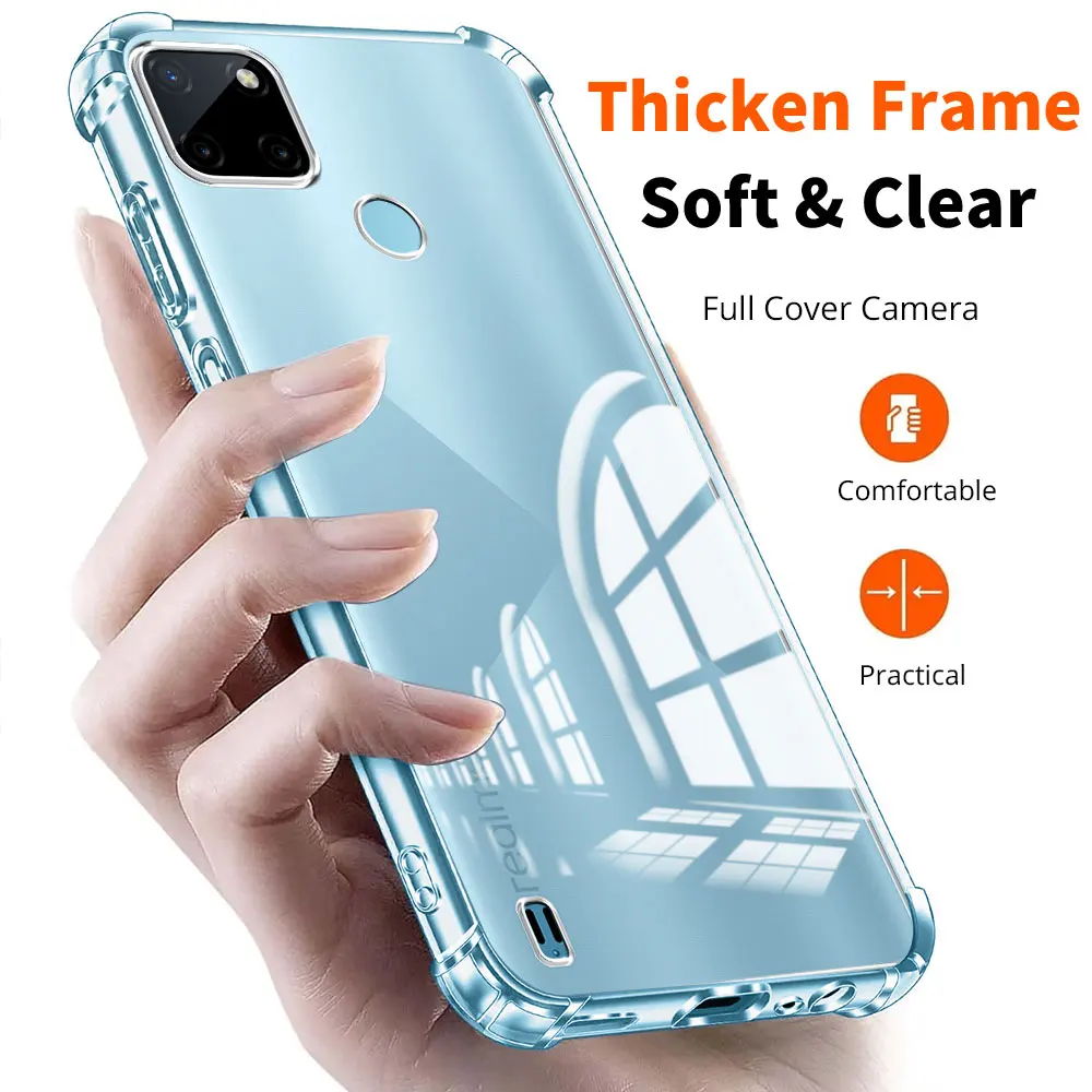 Funda de teléfono para Realme C25Y C21Y, funda transparente de silicona suave a prueba de golpes, Airbag, parachoques para Realme C11 2021 C20, funda trasera