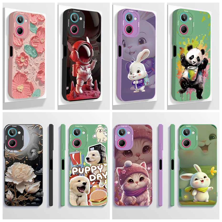 Comprar Funda de teléfono para Realme, carcasa trasera protectora de TPU, silicona líquida a prueba de golpes, astronauta estético, 10, Realme, 10, 4G, 10 Pro Plus