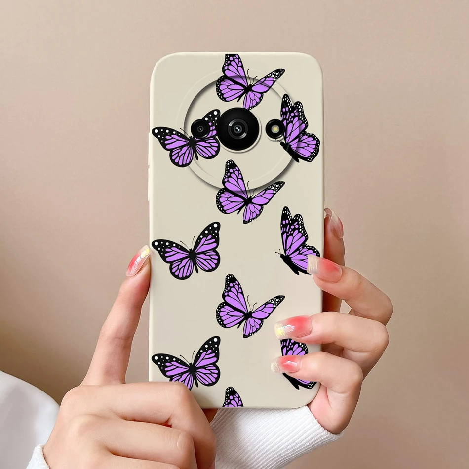 Comprar Funda de teléfono para Redmi A3 4G, carcasa de silicona líquida suave de mariposa, protección de cámara, cubierta trasera antichoc para Redmi A3