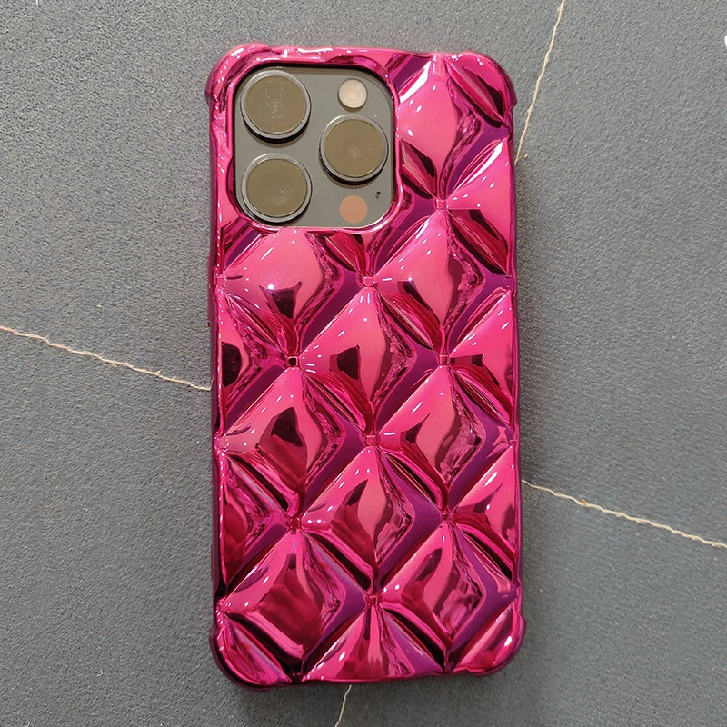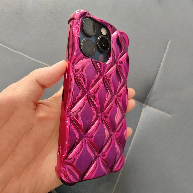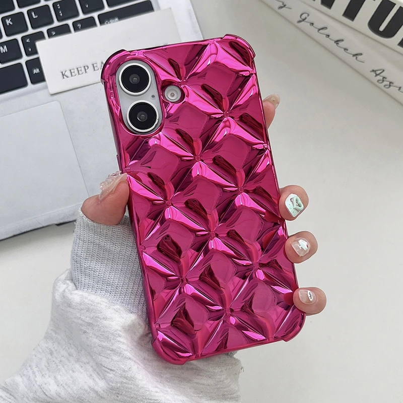 Comprar Funda de teléfono con rejilla de rombos 3D rosa chapada brillante a la moda para iPhone 16 Pro Max 15 13 14 12 11 funda trasera de silicona suave