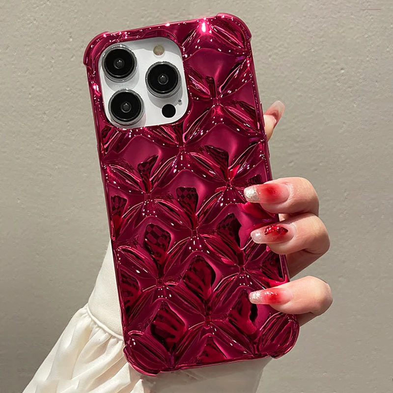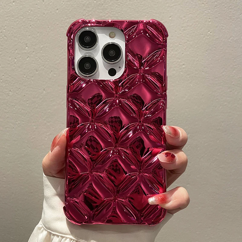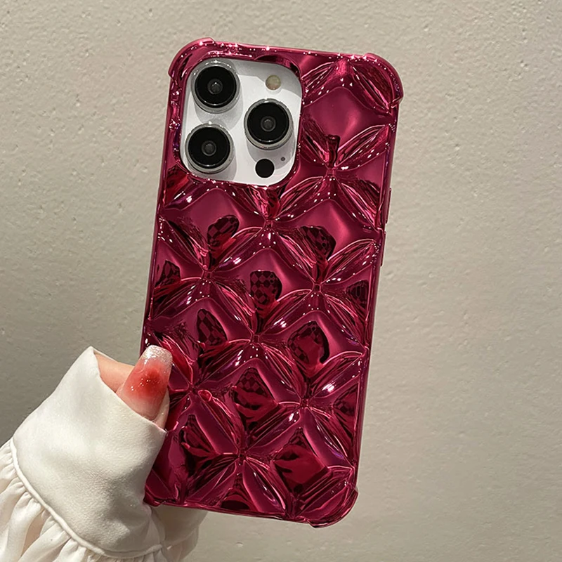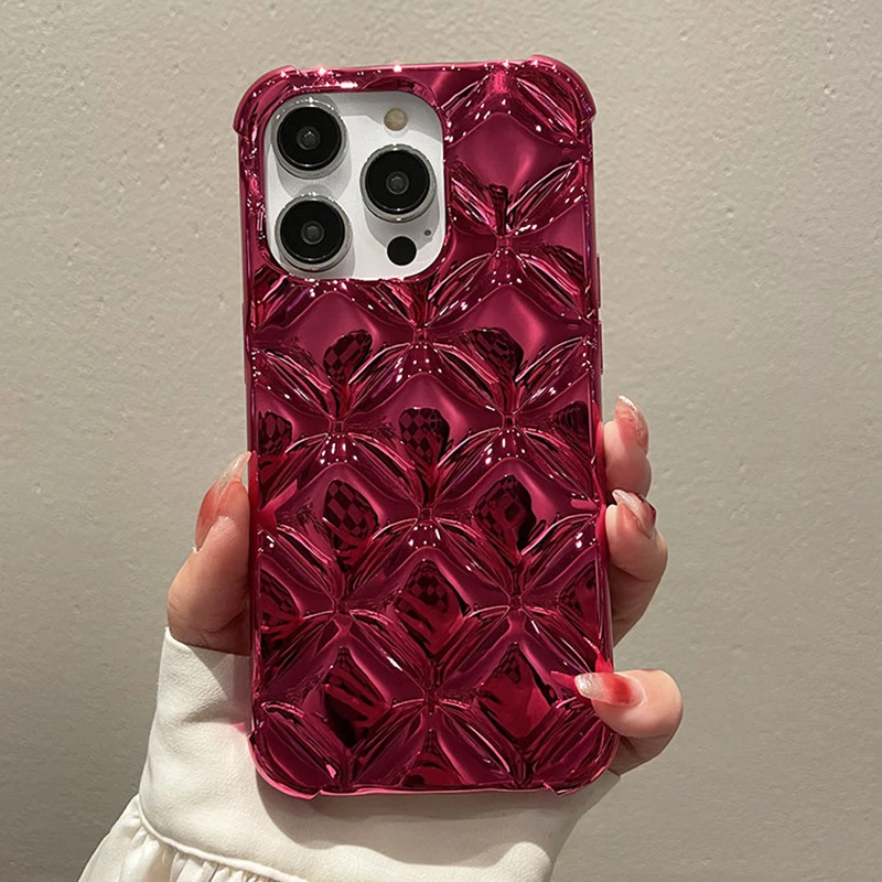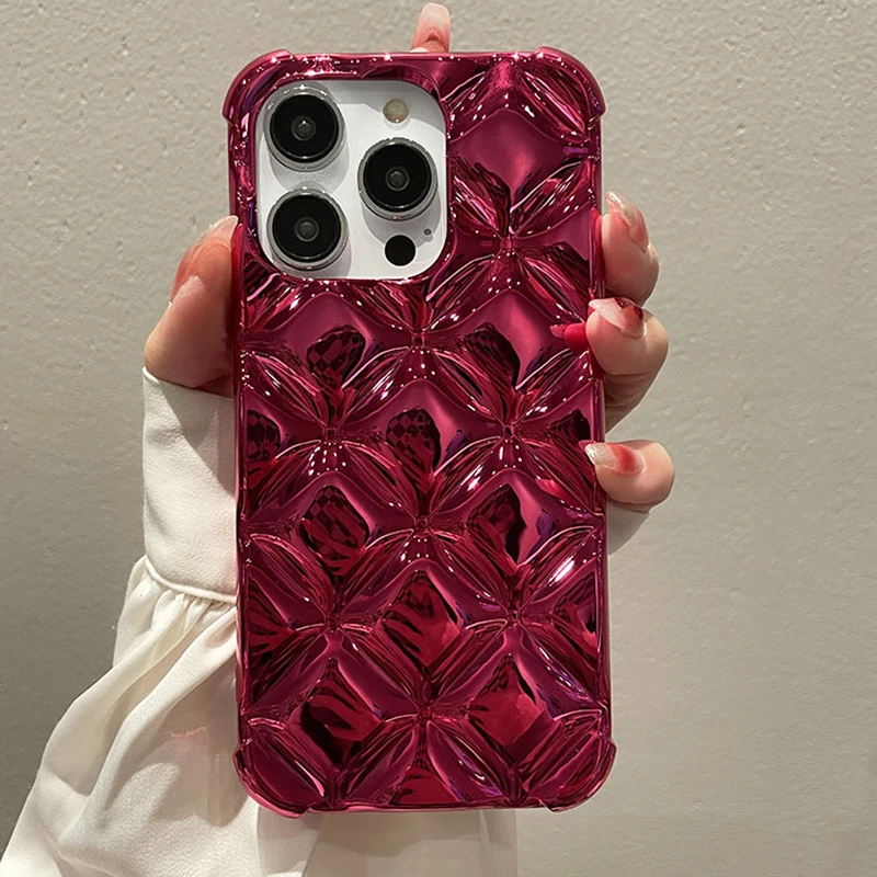 Fashion Glossy Plating Rose 3D Rhombus Grid Phone Case For iPhone 16 Pro Max 15 13 14 12 11 Soft Silicone Back Cover
