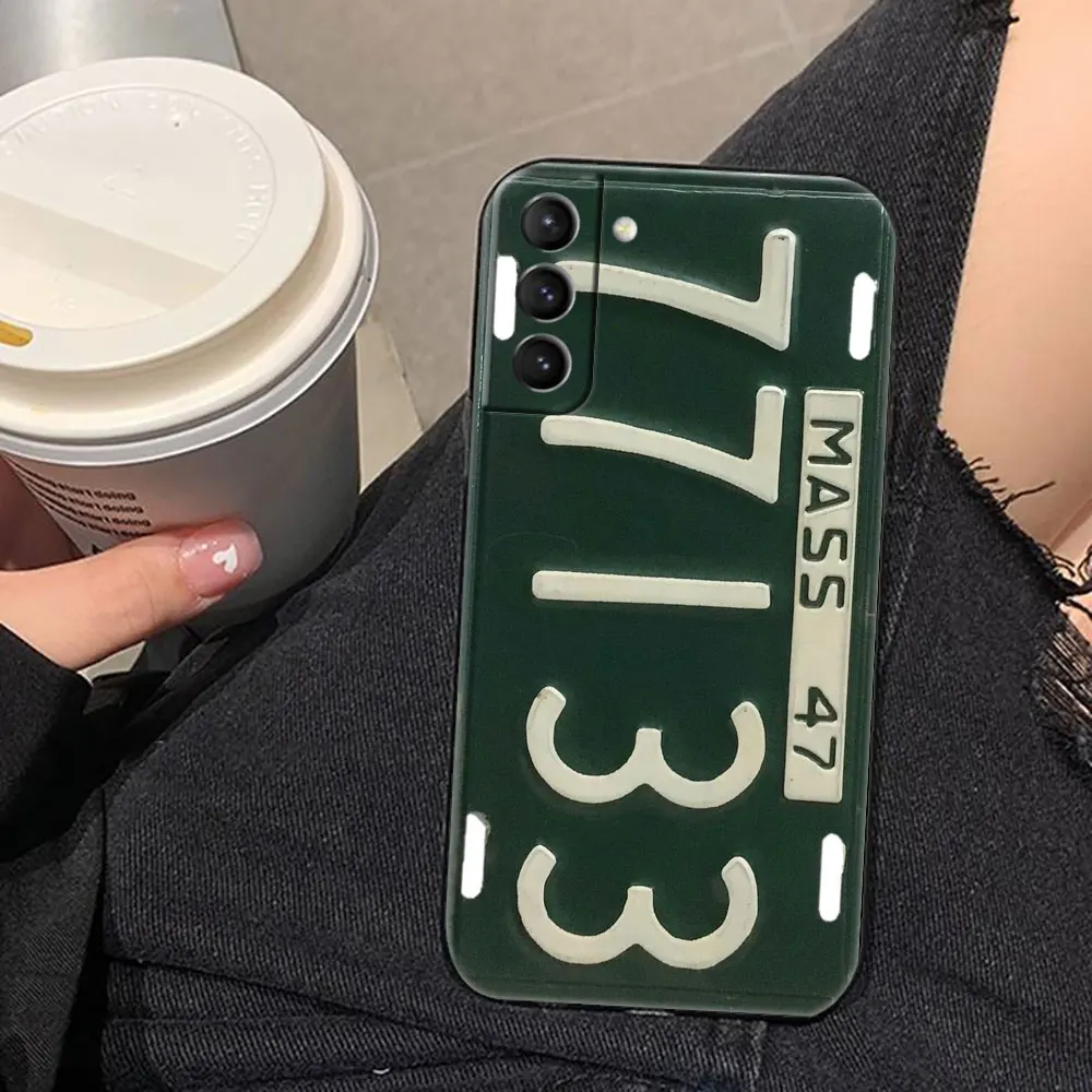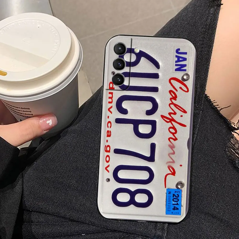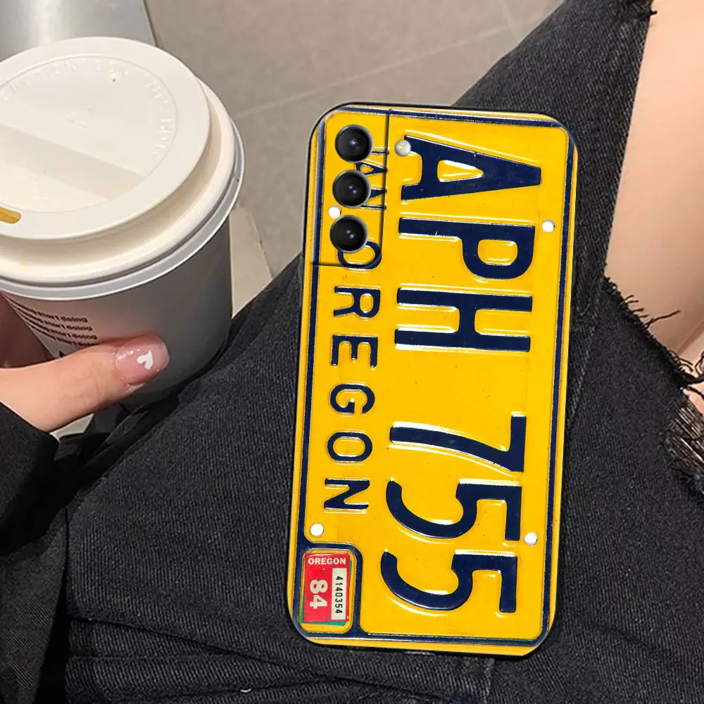 Coche con números de matrícula divertido retroFunda de teléfono para Samsung Galaxy S23 S22 S21 S20 Ultra 5G Fe S10 S10E S9 S8 Plus Lite Fundas Negro Silicona suave a prueba de golpes Funda trasera Coque Capa