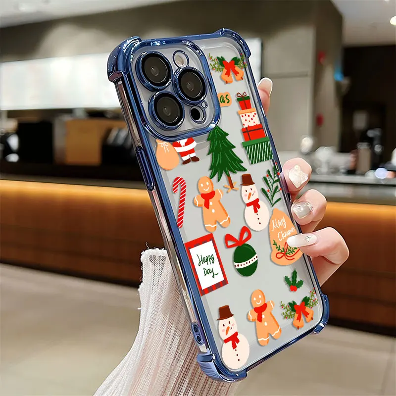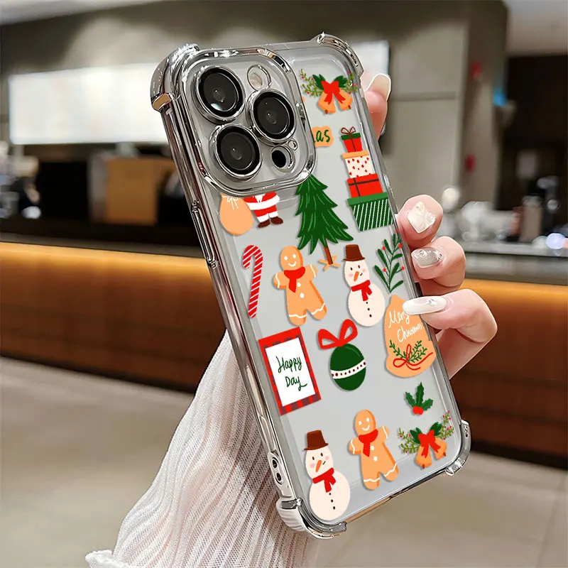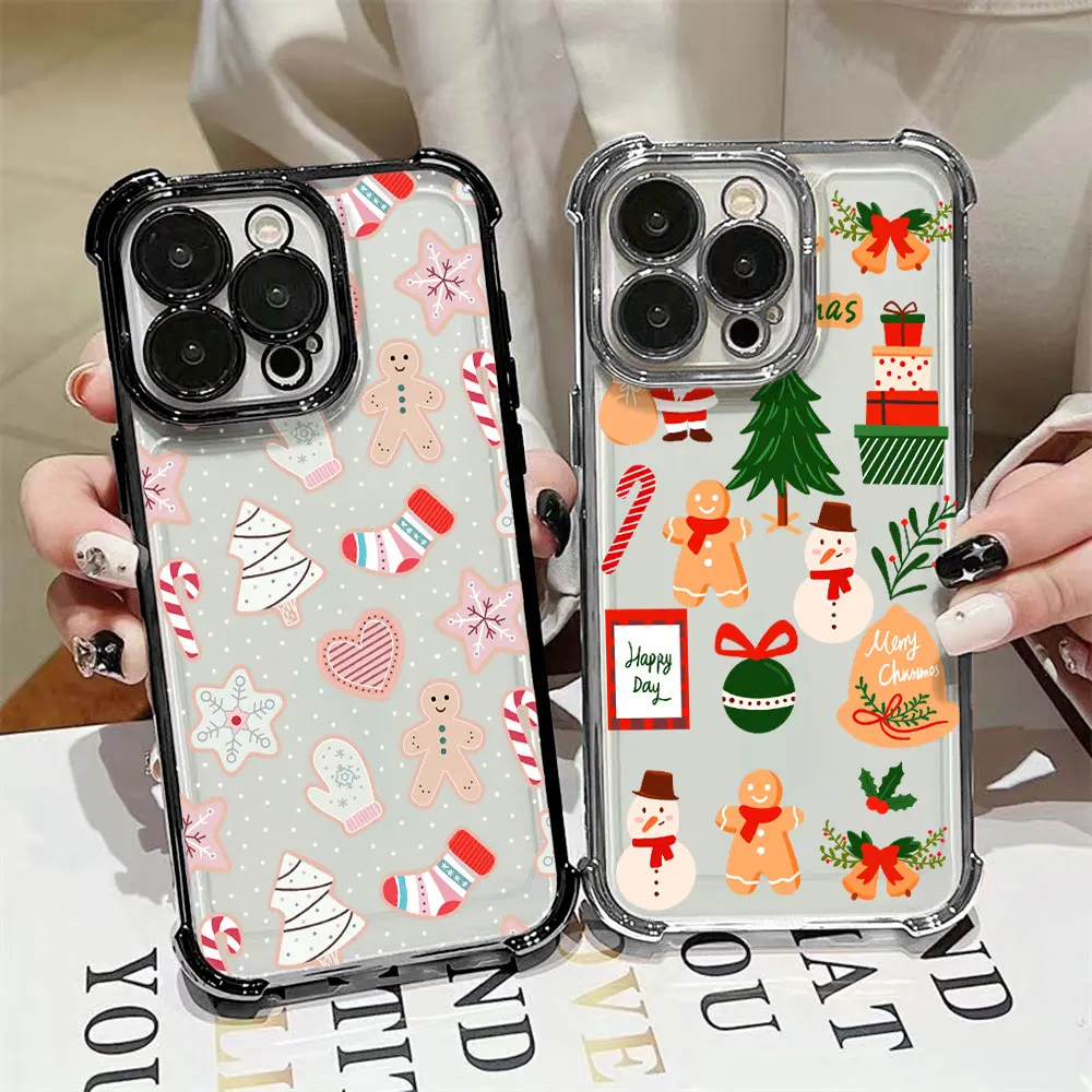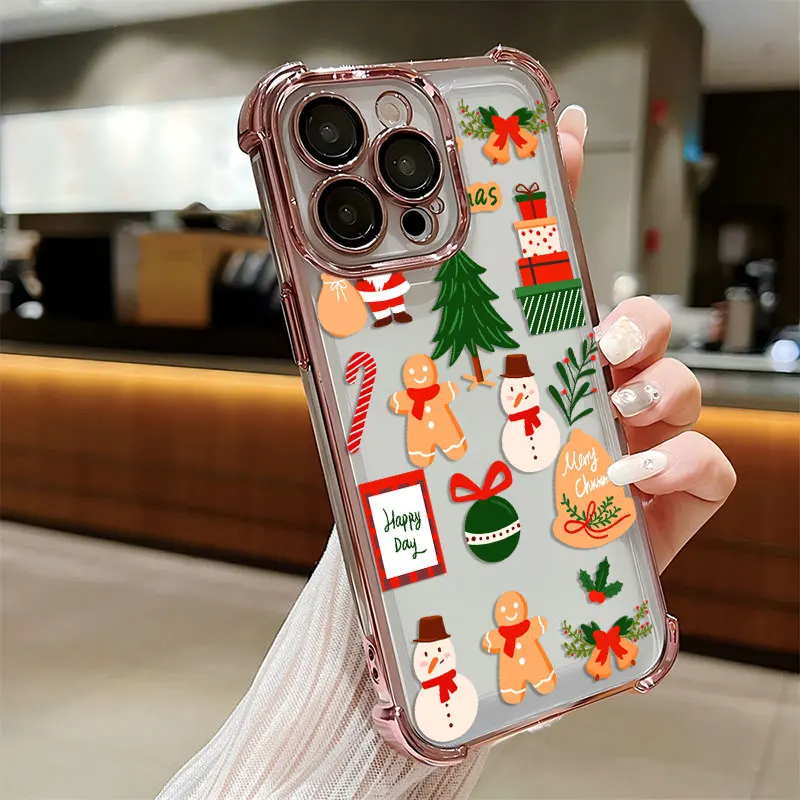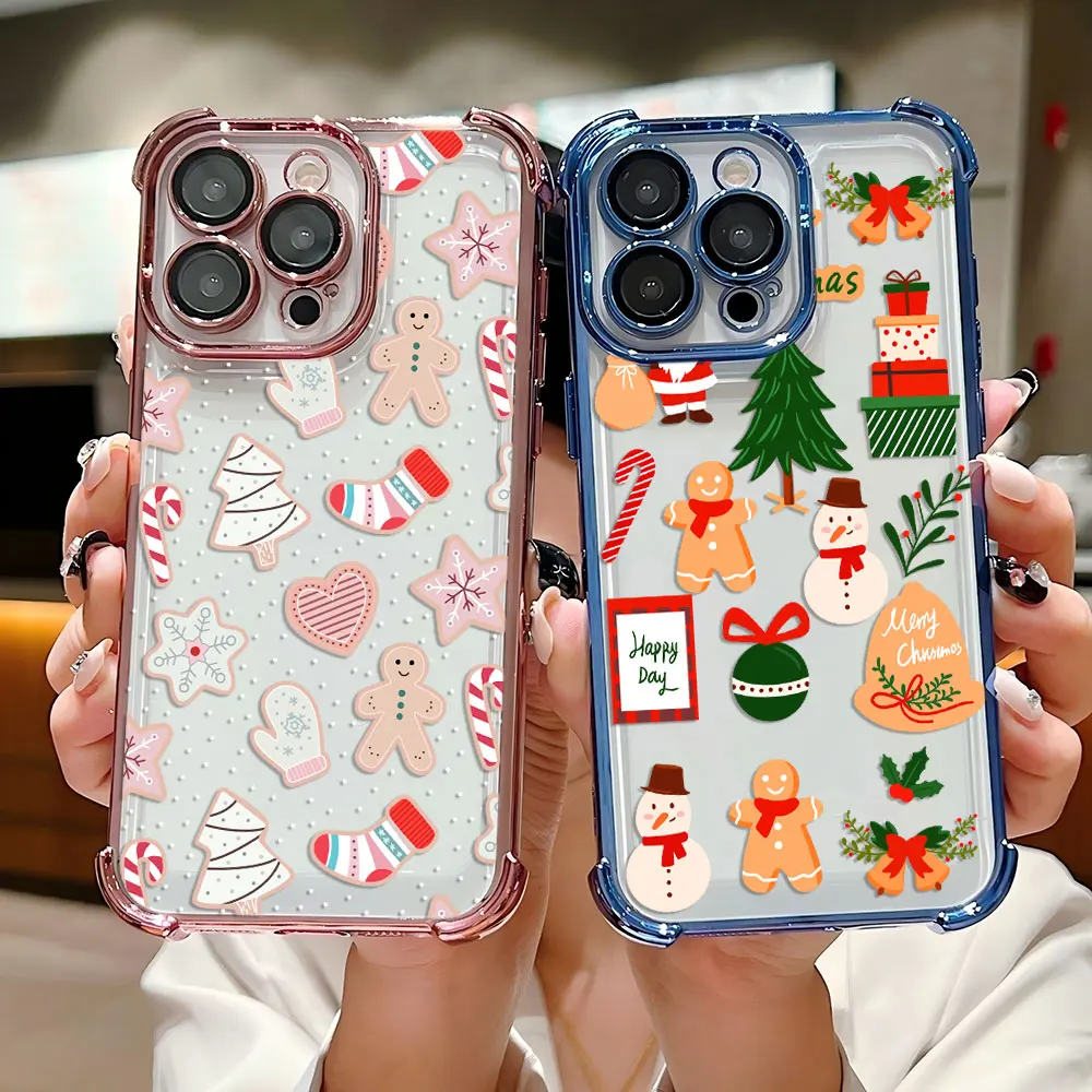 Comprar Funda de teléfono con revestimiento navideño de muñeco de nieve y alce de Papá Noel para iPhone 17 16e 16 15 14 13 12 11 Pro Max X XR XSMax 7 8 Mini Air Plus