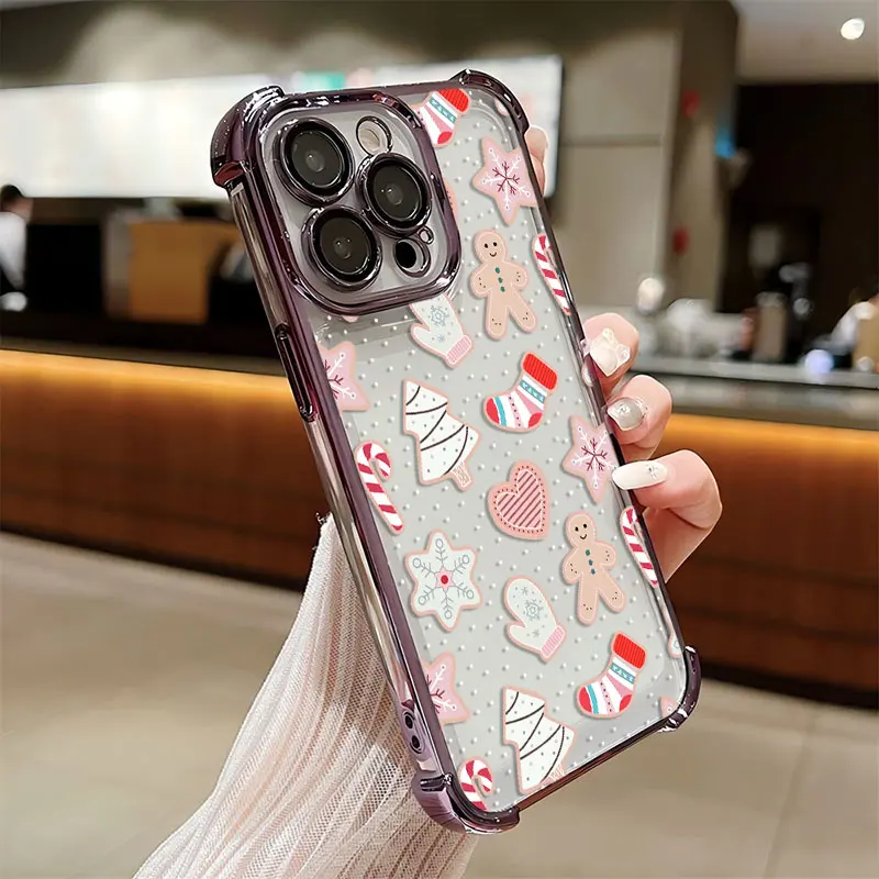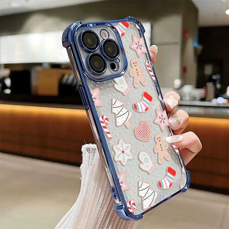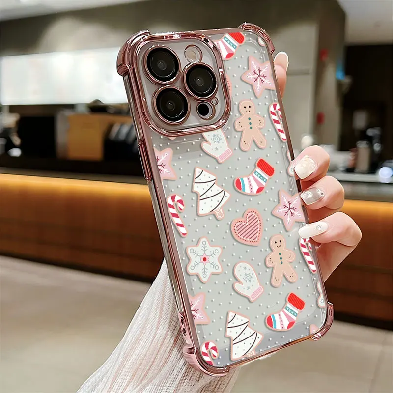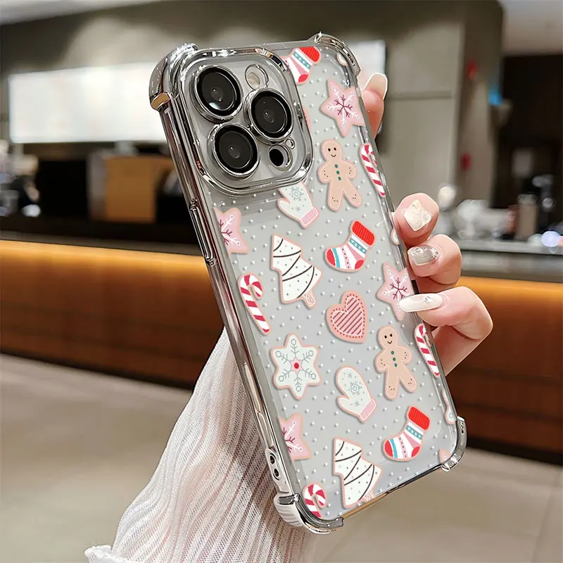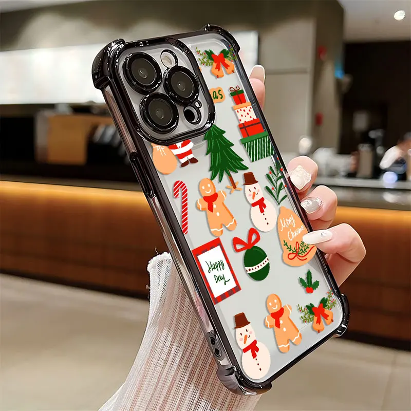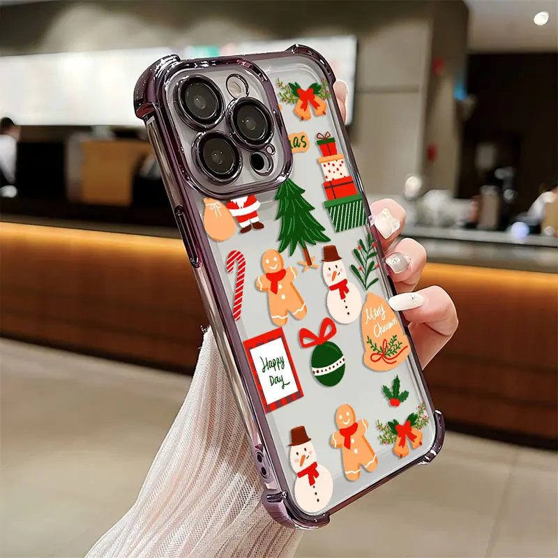 Comprar Funda de teléfono con revestimiento navideño de muñeco de nieve y alce de Papá Noel para iPhone 17 16e 16 15 14 13 12 11 Pro Max X XR XSMax 7 8 Mini Air Plus