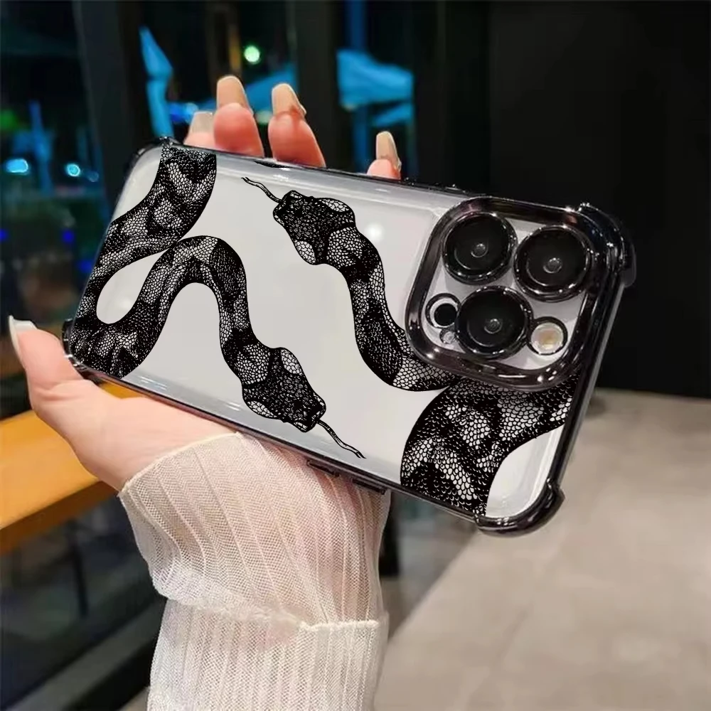 Funda de teléfono con revestimiento de serpiente negra Vintage de lujo para iPhone 17 Pro Max 17 Air 16 Pro 15 14 Plus 13 12 11 16E cubierta trasera anticaída