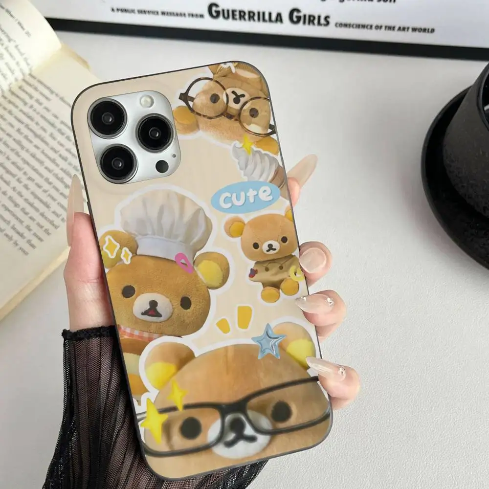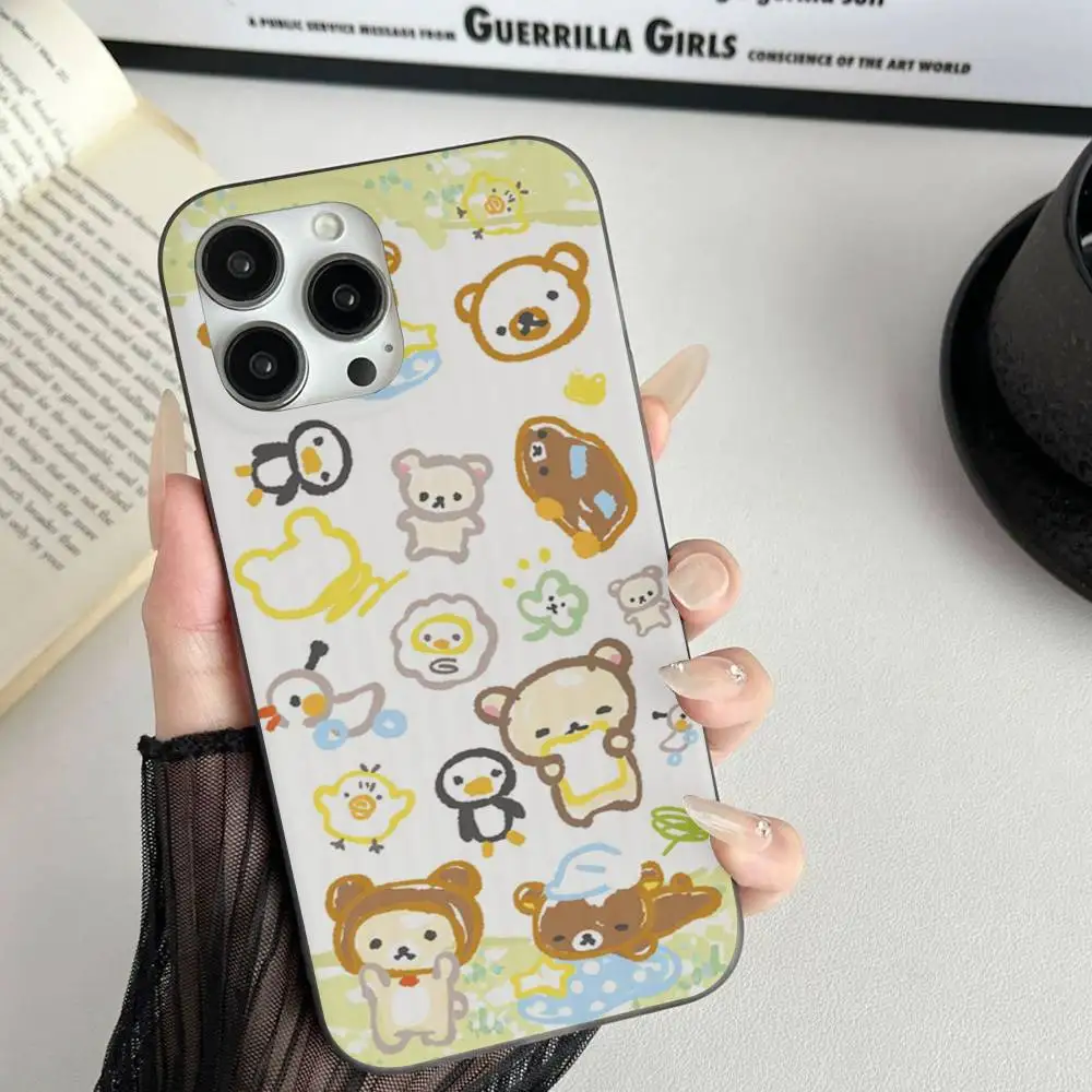 Funda de teléfono Rilakkuma, funda de teléfono con patrón corrugado para iPhone 17 Air 16 15 14 13 Pro Max, funda mate a prueba de golpes