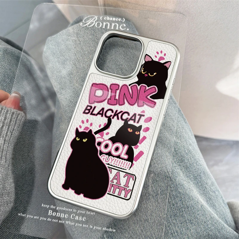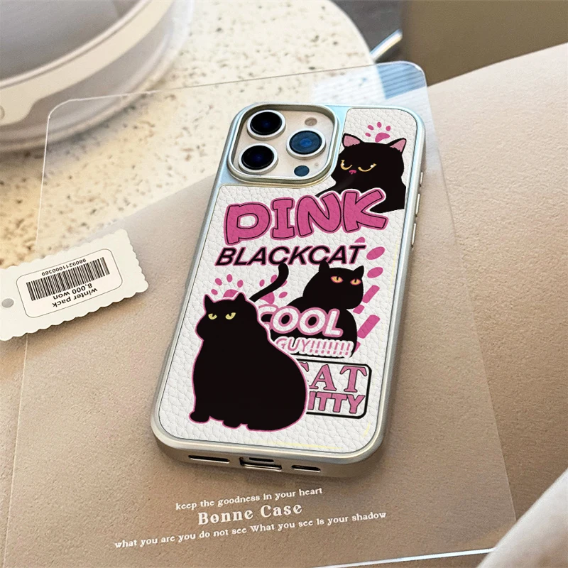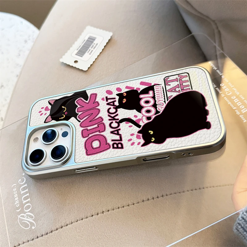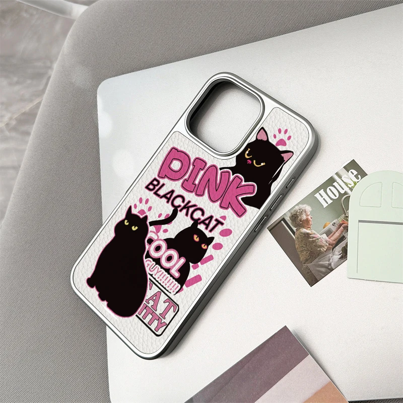 Funda de teléfono rosa BLACKCAT para iPhone11/12/13/14/15/16/17 Pro Max AIR PLUS textura de cuero epoxi TPU