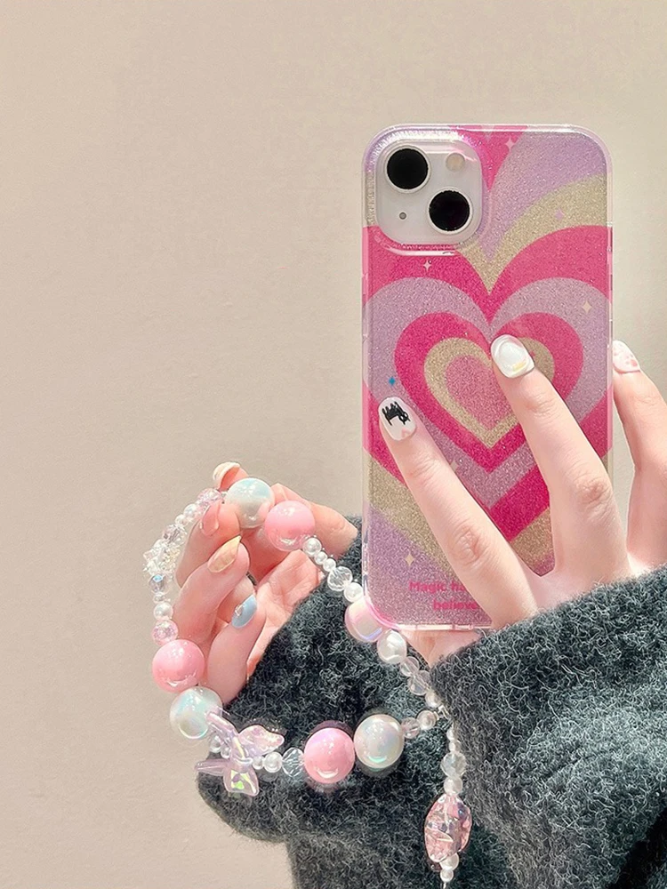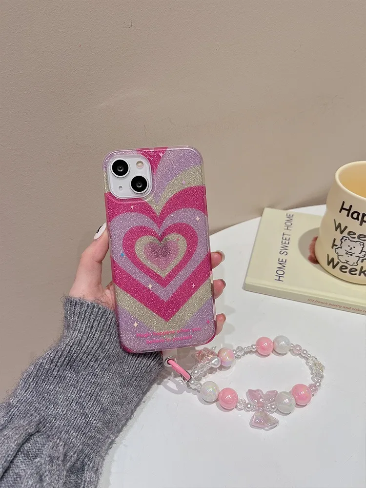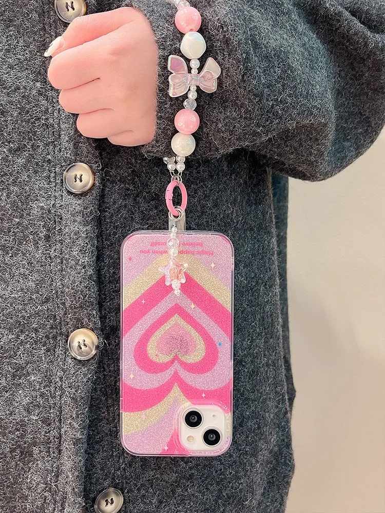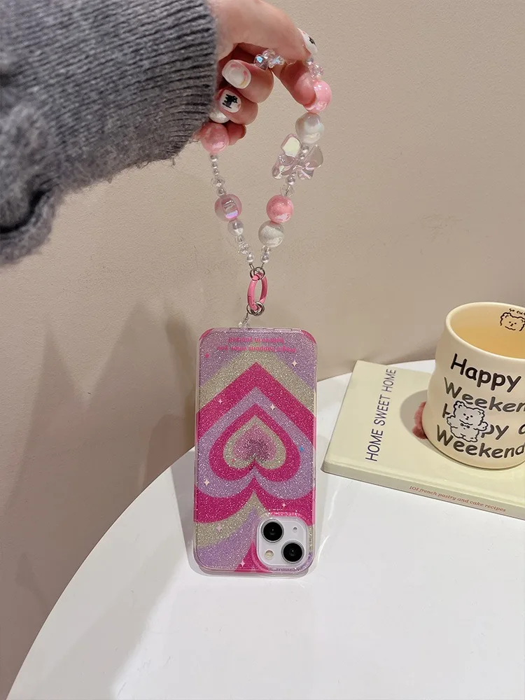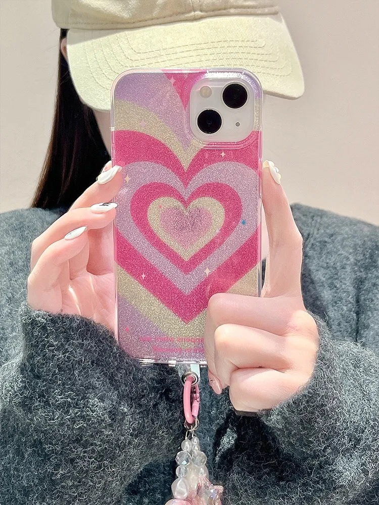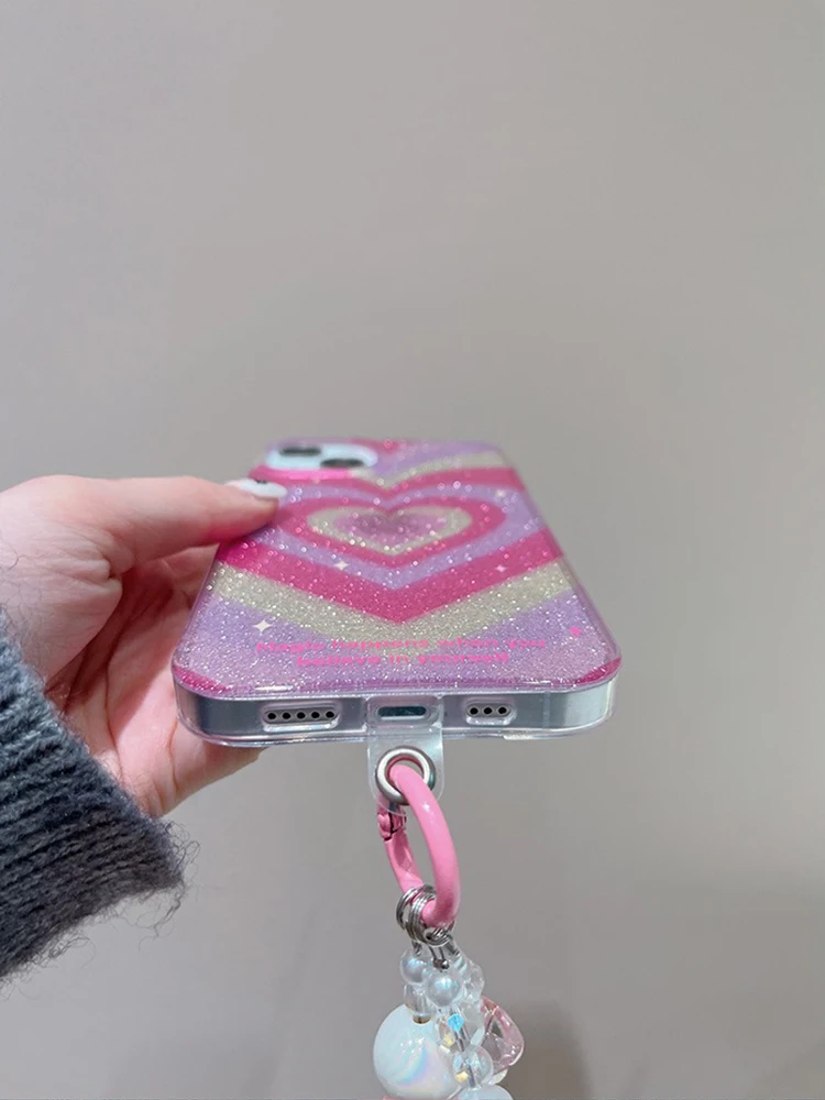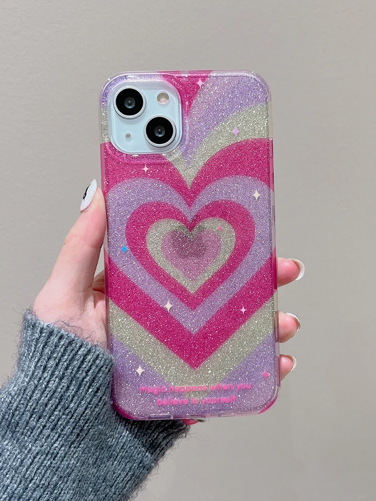 Funda de teléfono con purpurina y corazón de amor Rosa degradado para iPhone 11 12 13 14 15 Pro Max IMD, funda de silicona