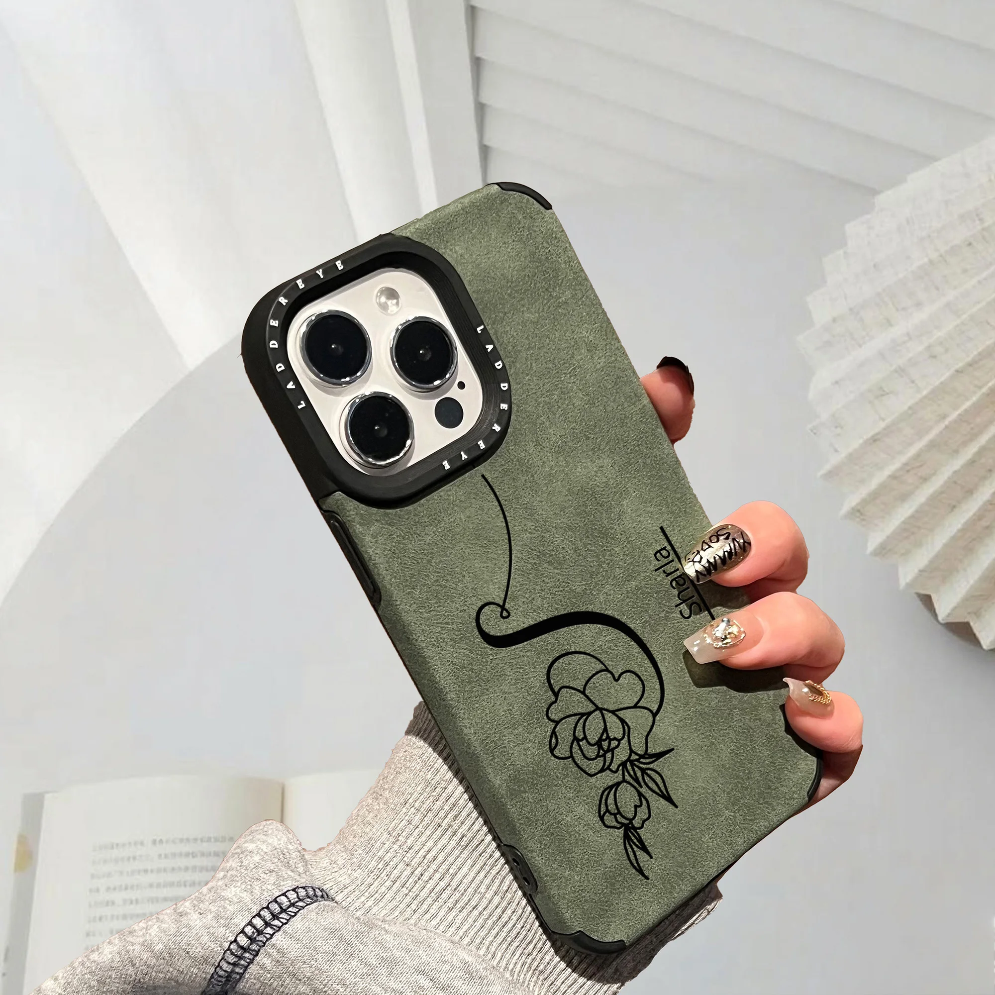 Funda para teléfono DIY con nombre personalizado, adecuada para Iphone17 16 15 14 13 12 11 Pro Max Plus. Fundas de lujo de piel sintética con rosas