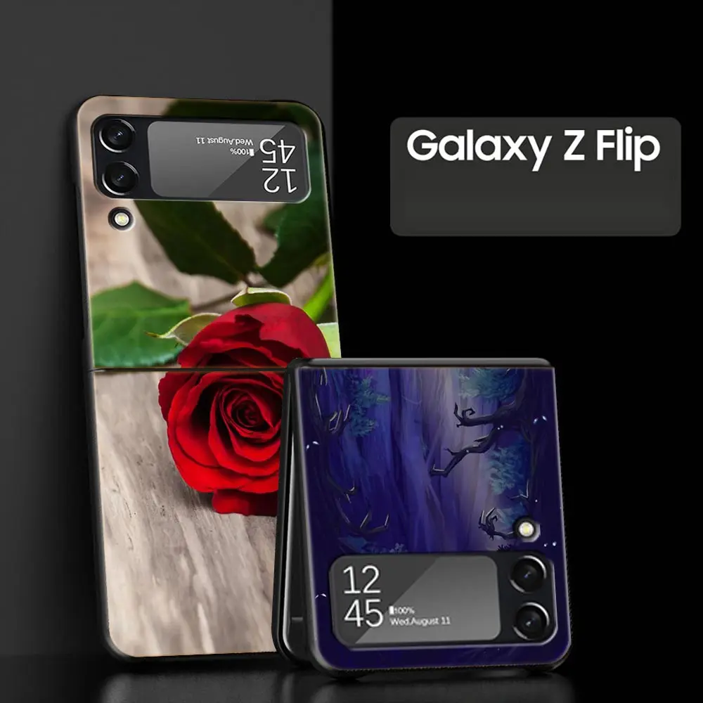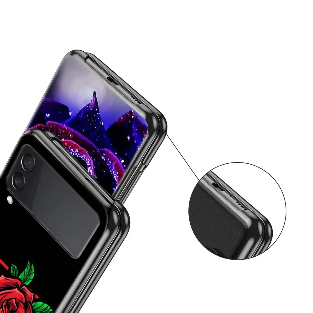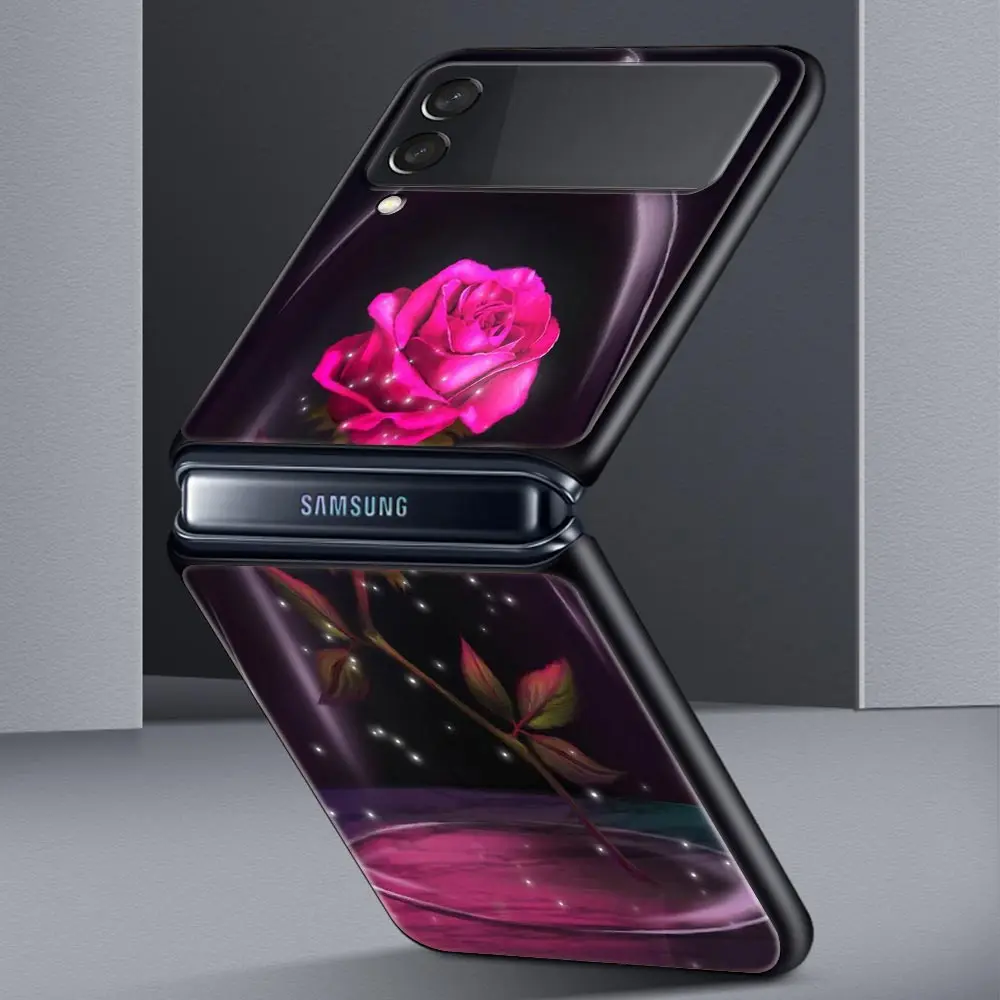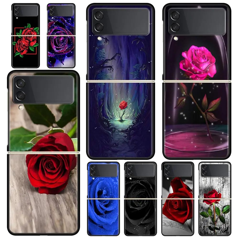 Comprar Funda de teléfono con rosas rojas y flores para Samsung Z Flip3 Flip4 Flip5, carcasa para Z Flip 3 Flip 5 4 5G, funda plegable dura