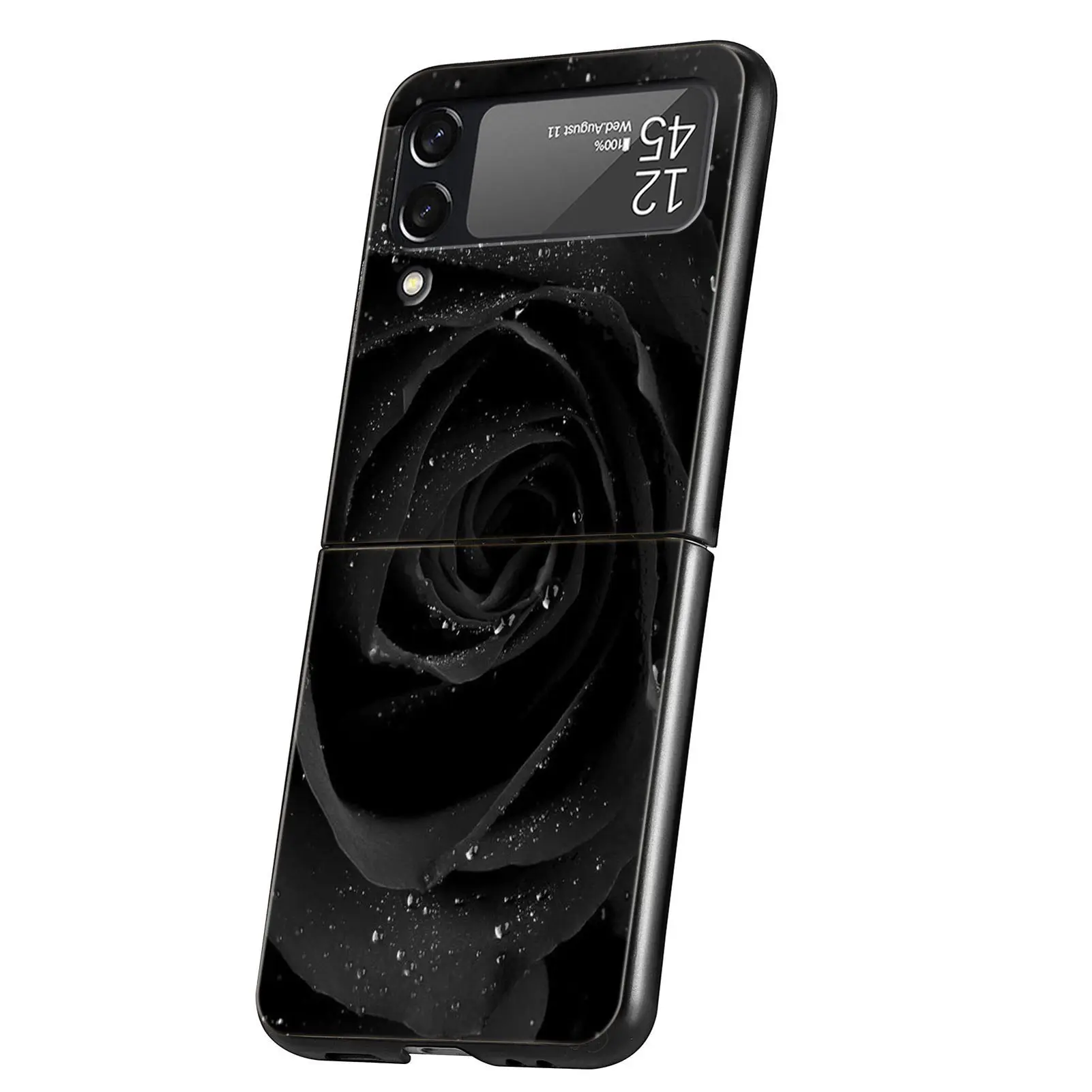Funda de teléfono para Samsung Galaxy Z Flip3 Flip4 Flip5, carcasa protectora para Z Flip 3 Flip 5 4 5G, funda trasera plegable dura negra