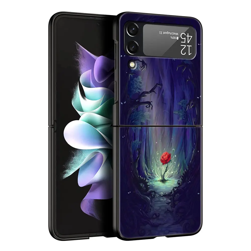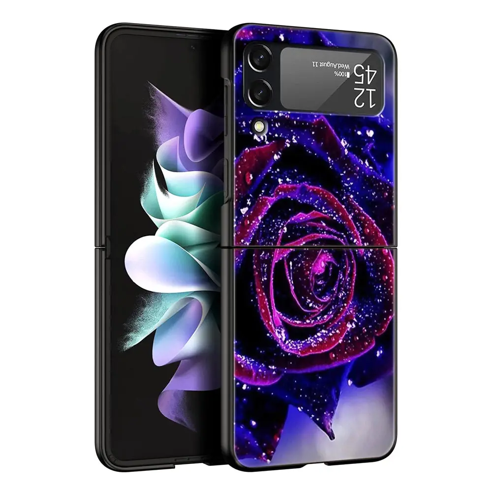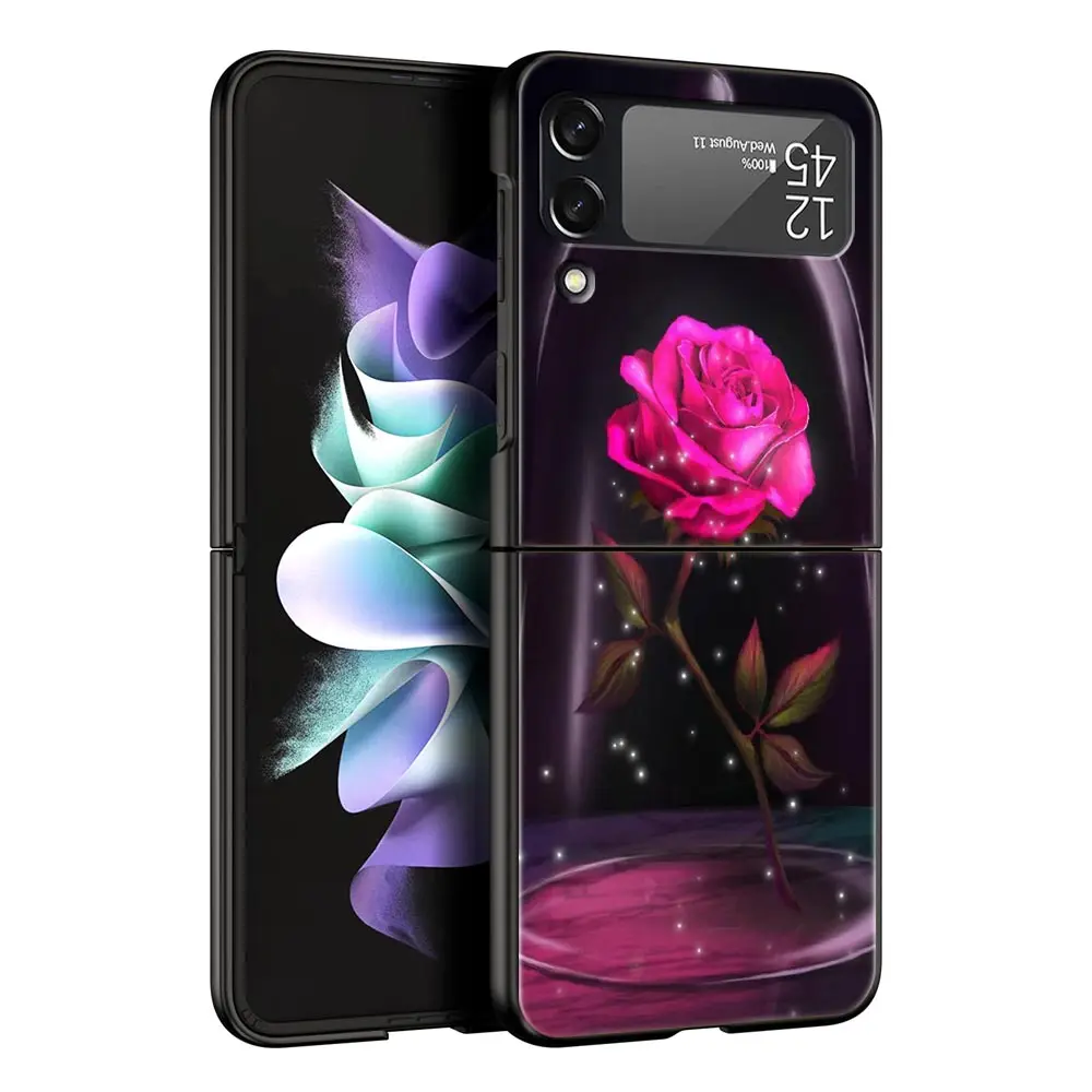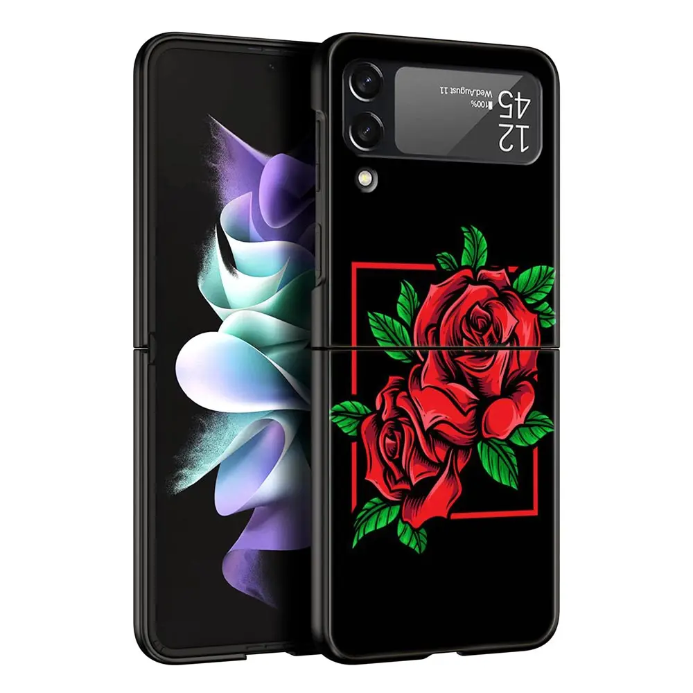 Comprar Funda de teléfono con rosas rojas y flores para Samsung Z Flip3 Flip4 Flip5, carcasa para Z Flip 3 Flip 5 4 5G, funda plegable dura