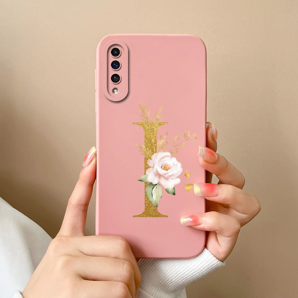 Funda de teléfono para Samsung A50 A50S elegante letra Rosa Suave silicona líquida lente funda protectora para Galaxy A 50 A 50S parachoques regalo