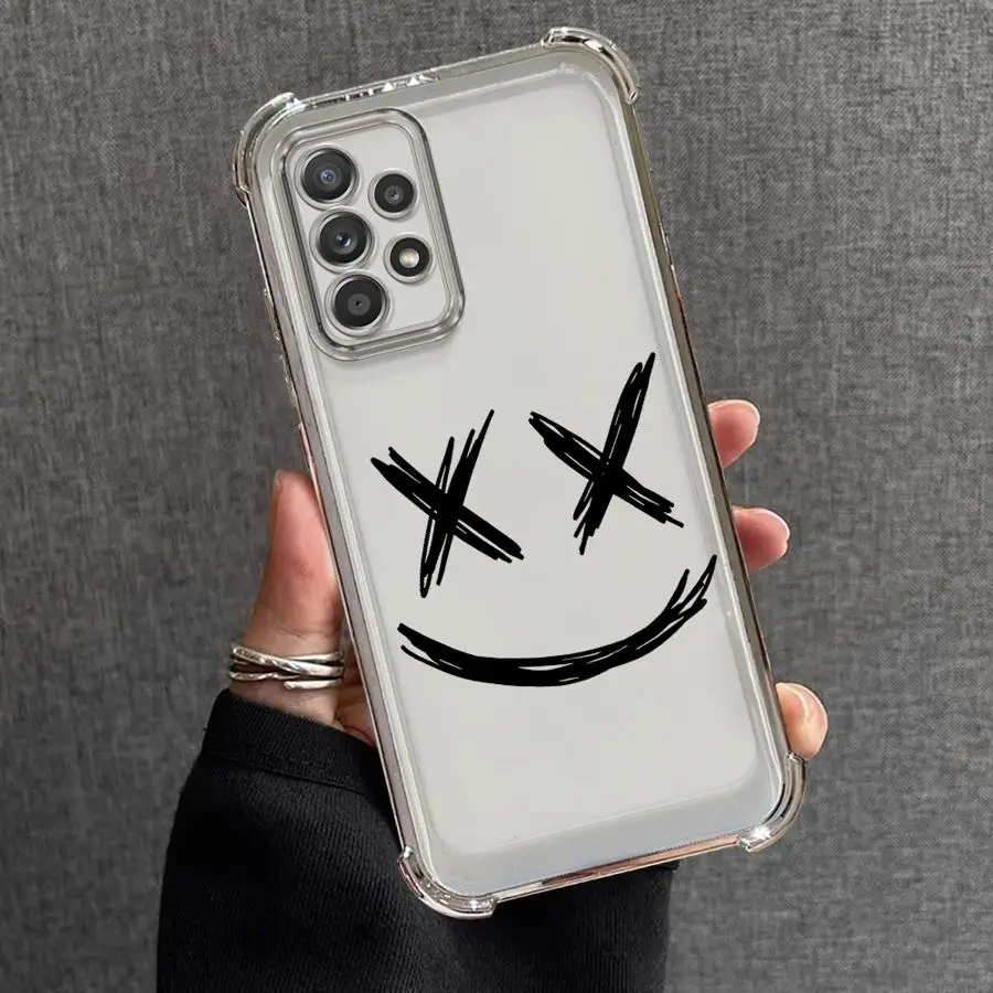 Funda de teléfono para Samsung Galaxy A25 A21s A26 A35 A36 A13 A16 A33 A24 A15 A52 A17, funda transparente, arte cómico, cara sonriente