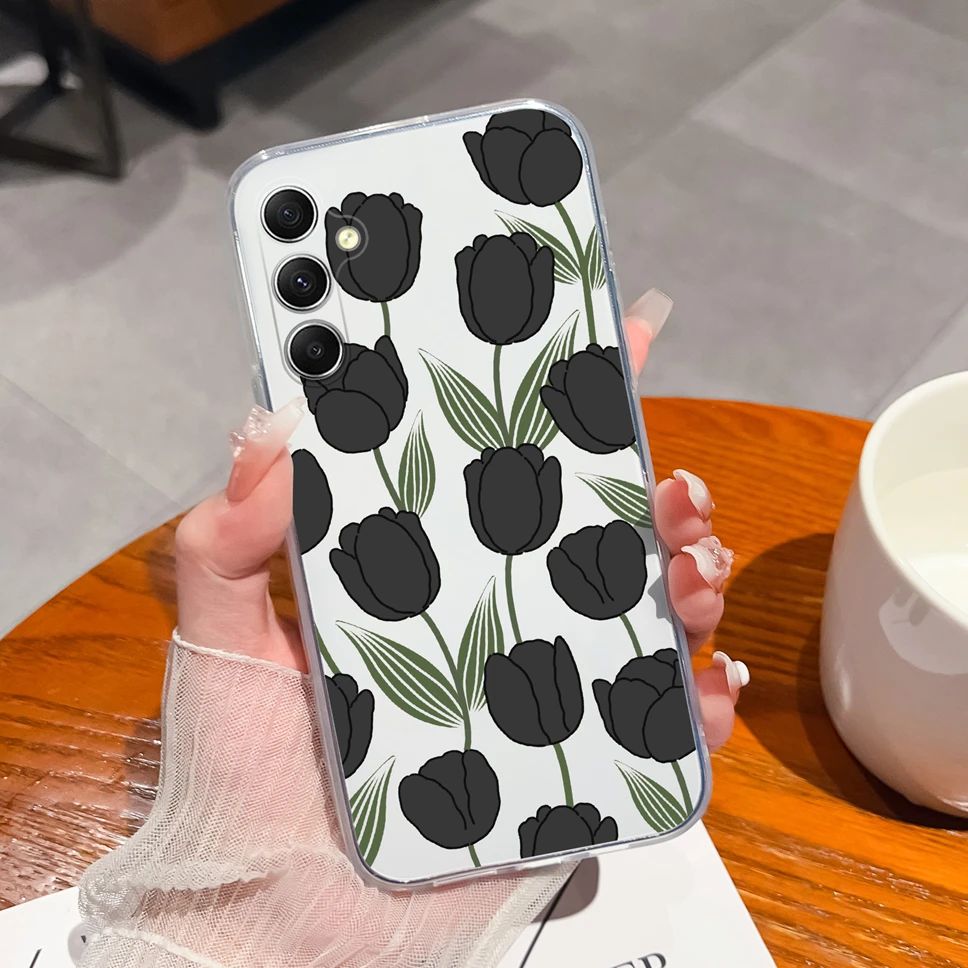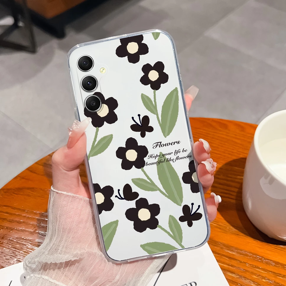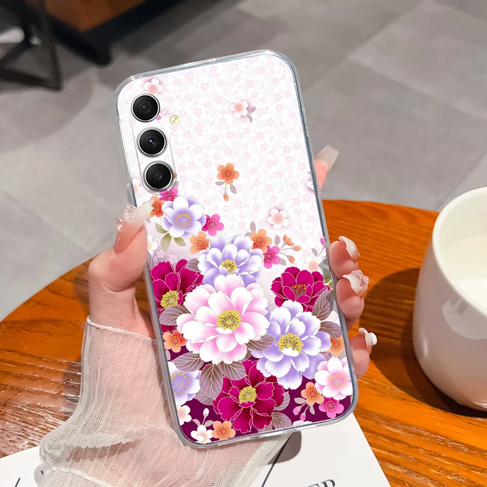 Comprar Funda de teléfono para Samsung Galaxy A35 A55 5G transparente lindas flores funda de silicona suave para Samsung A 35 55 5G Fundas Shell