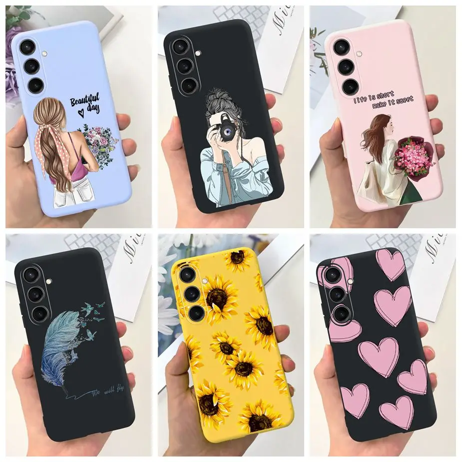 Funda para Samsung Galaxy A35, funda para teléfono pintada con girasol y chicas bonitas, para Samsung A35 A 35 GalaxyA35, funda blanda para parachoques
