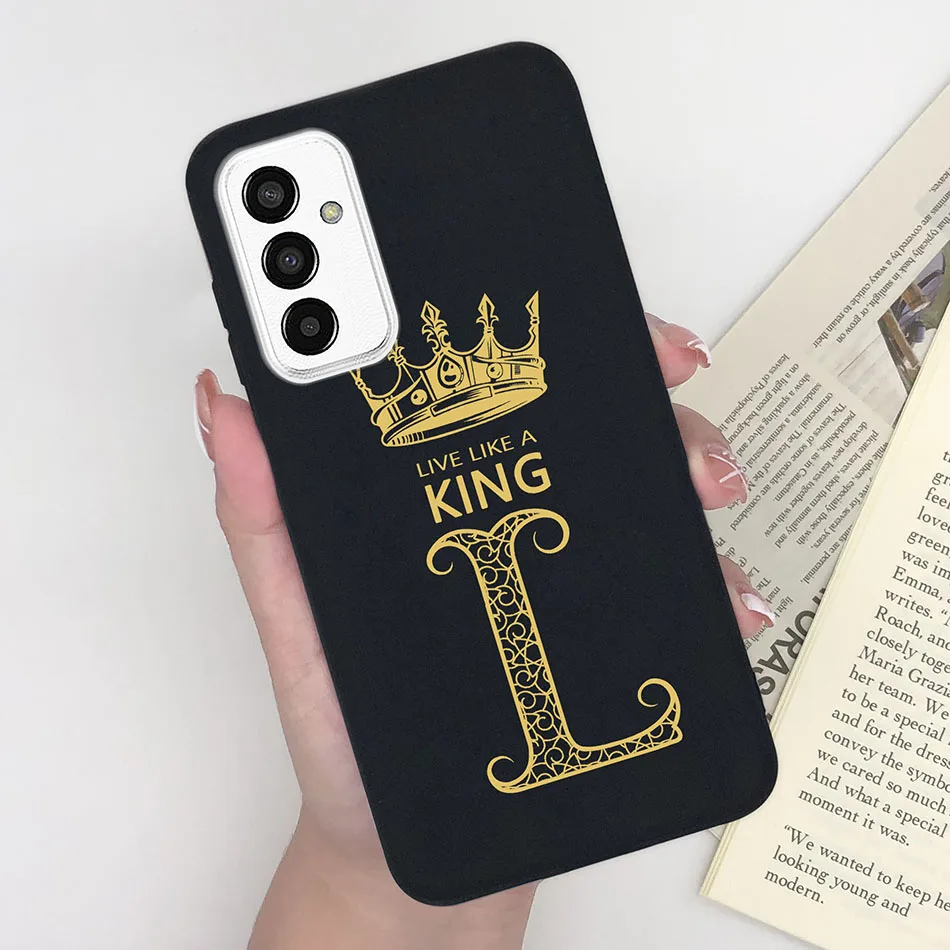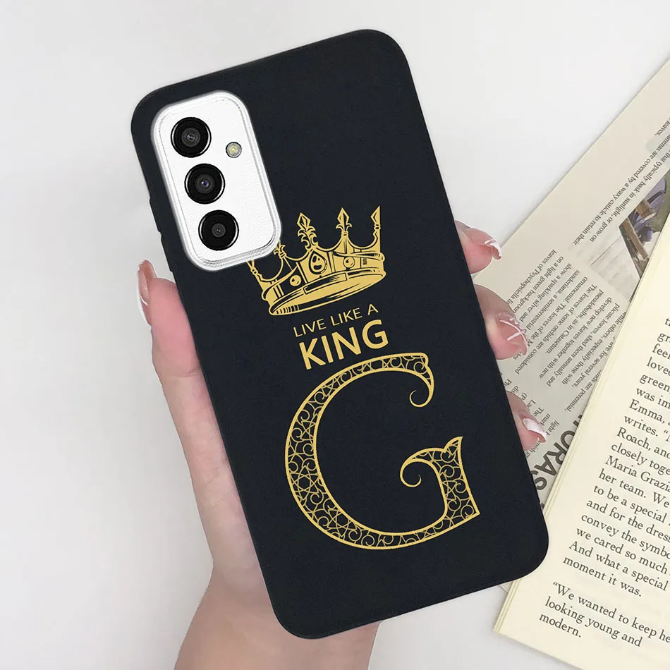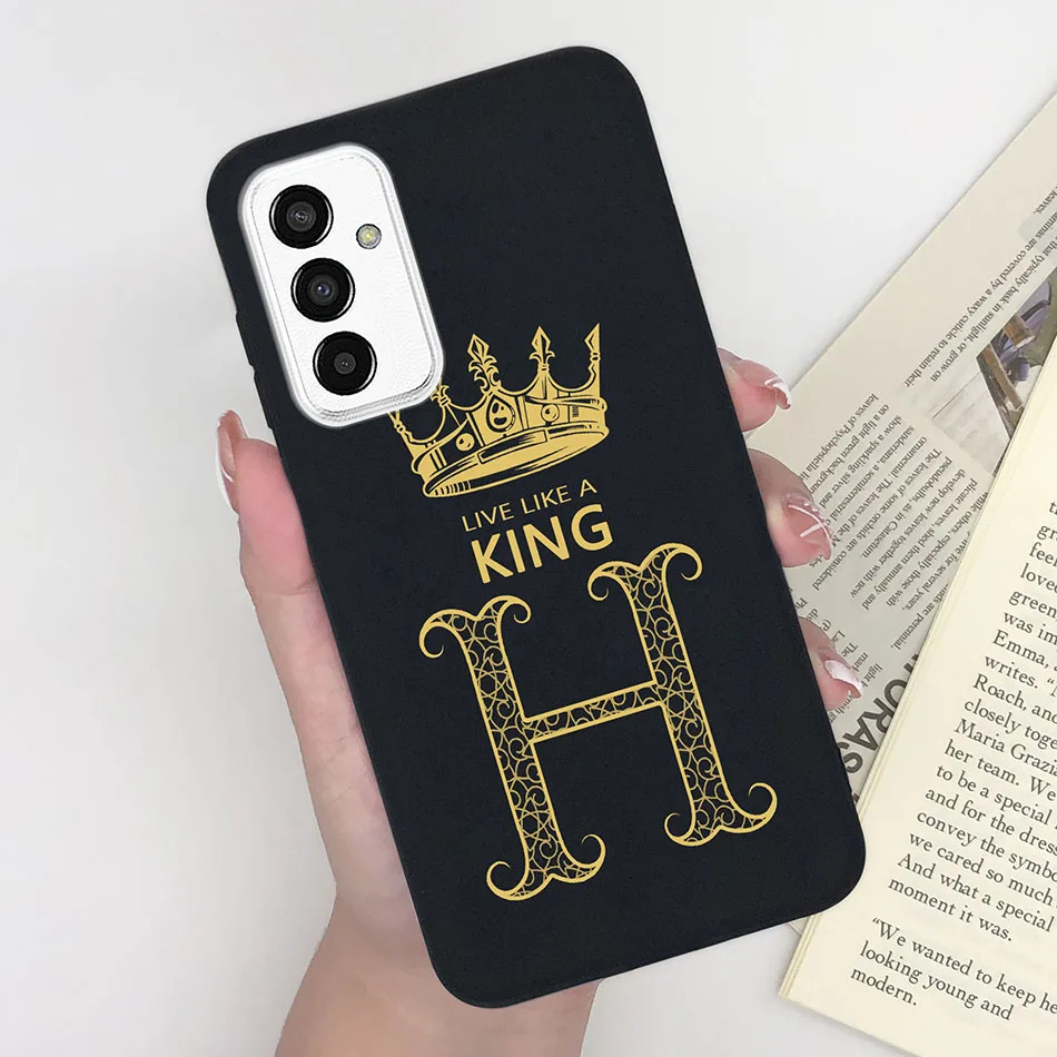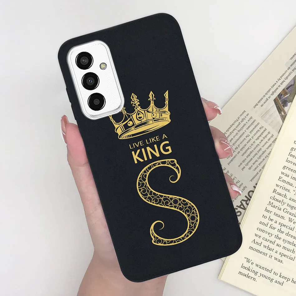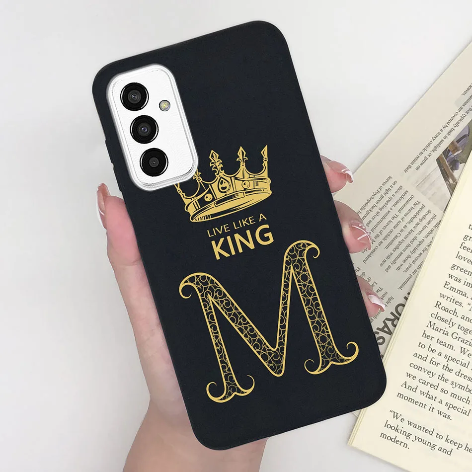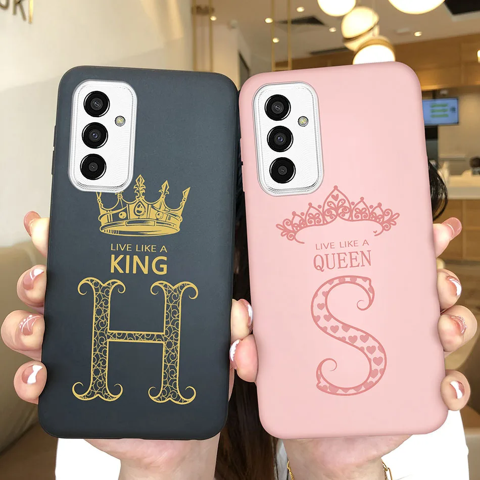 Funda de teléfono para Samsung Galaxy M13 M13 India 4G, bonita corona de lujo con letras, funda trasera de silicona suave, carcasa de sentido avanzado para pareja