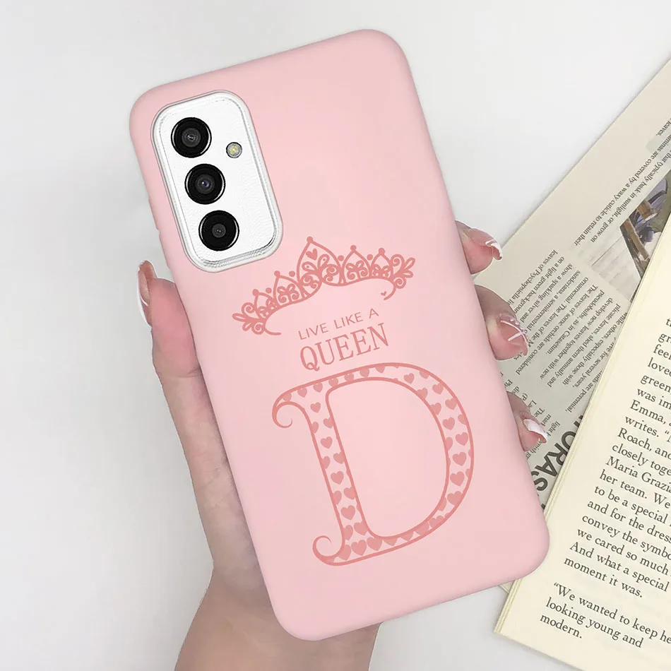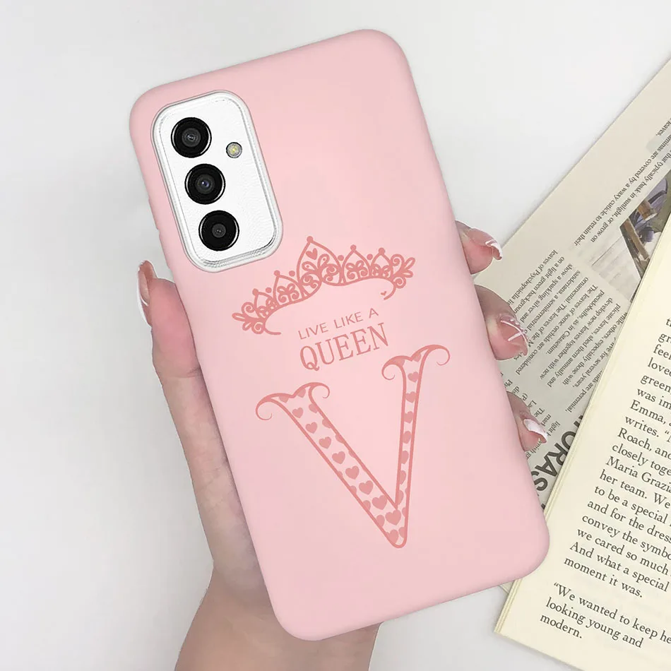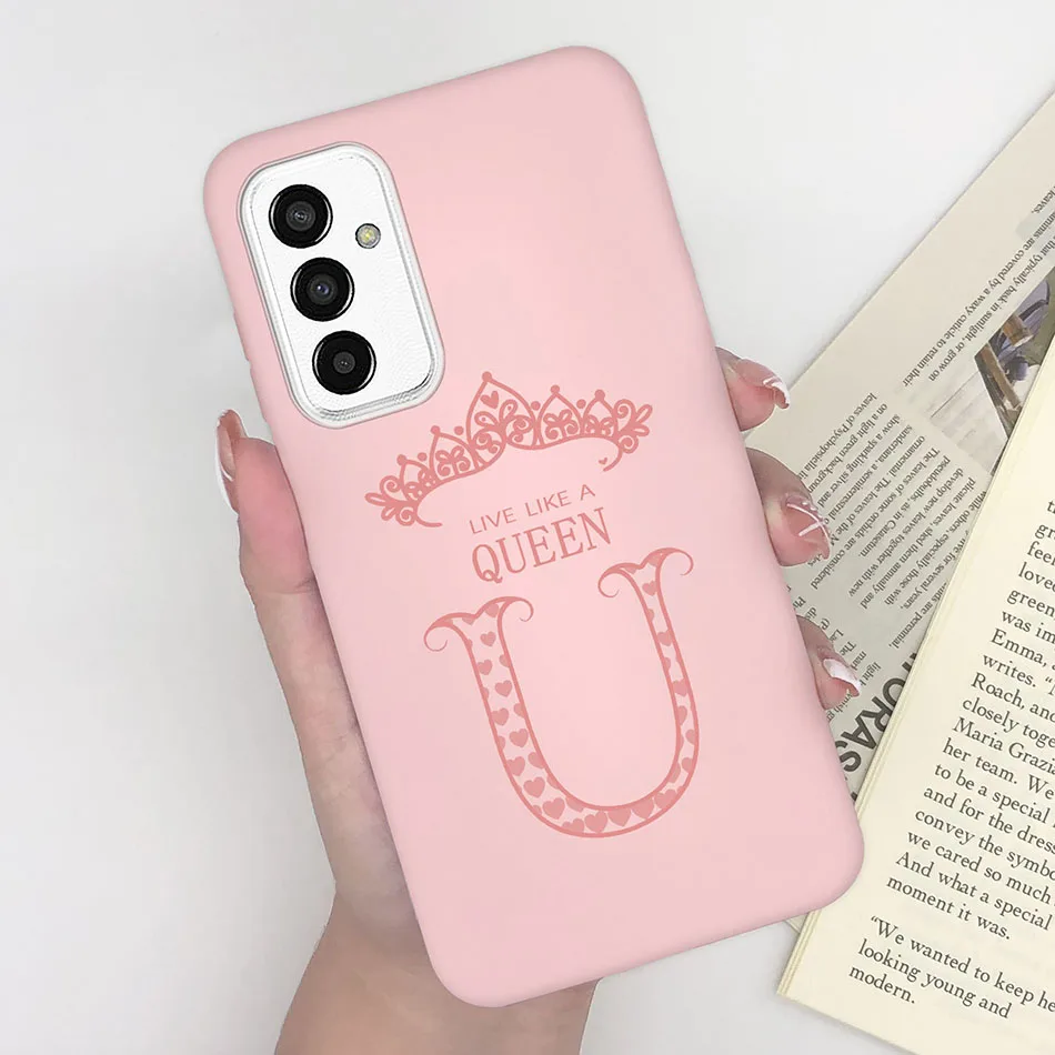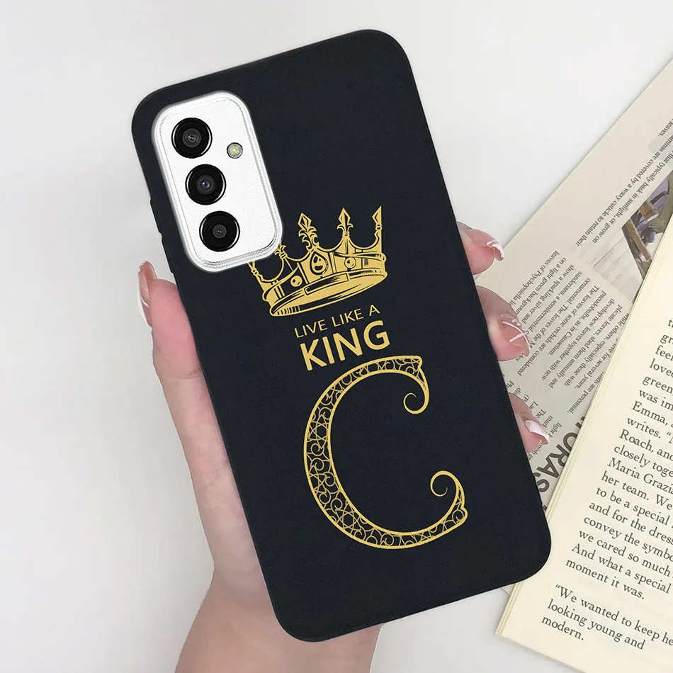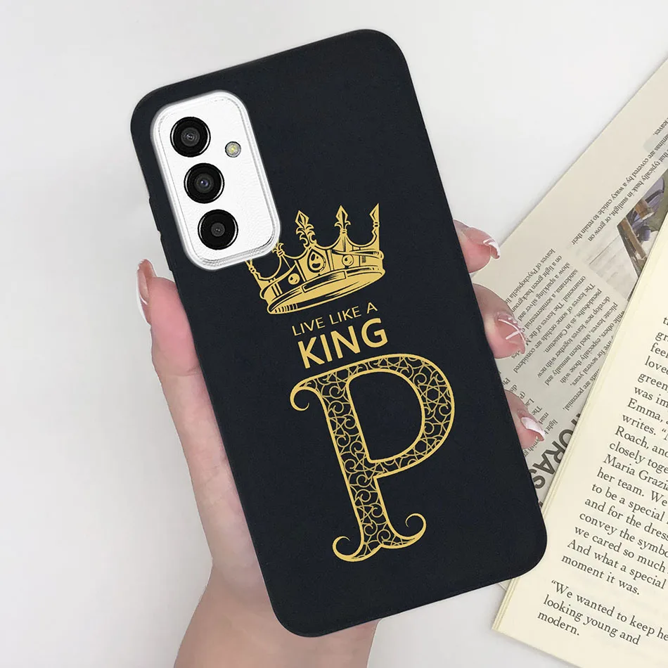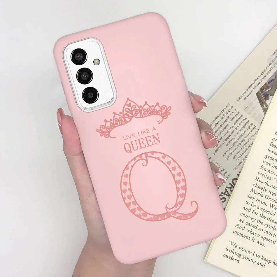 Funda de teléfono para Samsung Galaxy M13 M13 India 4G, bonita corona de lujo con letras, funda trasera de silicona suave, carcasa de sentido avanzado para pareja