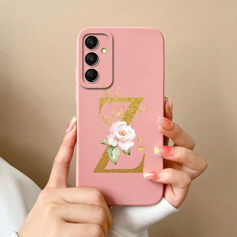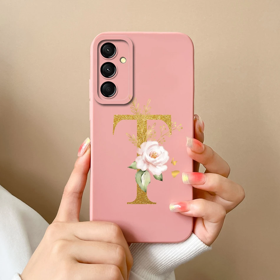 Comprar Funda de teléfono para Samsung Galaxy M35 5G, cubierta trasera protectora de lente de silicona líquida suave, letra Rosa elegante, parachoques M 35
