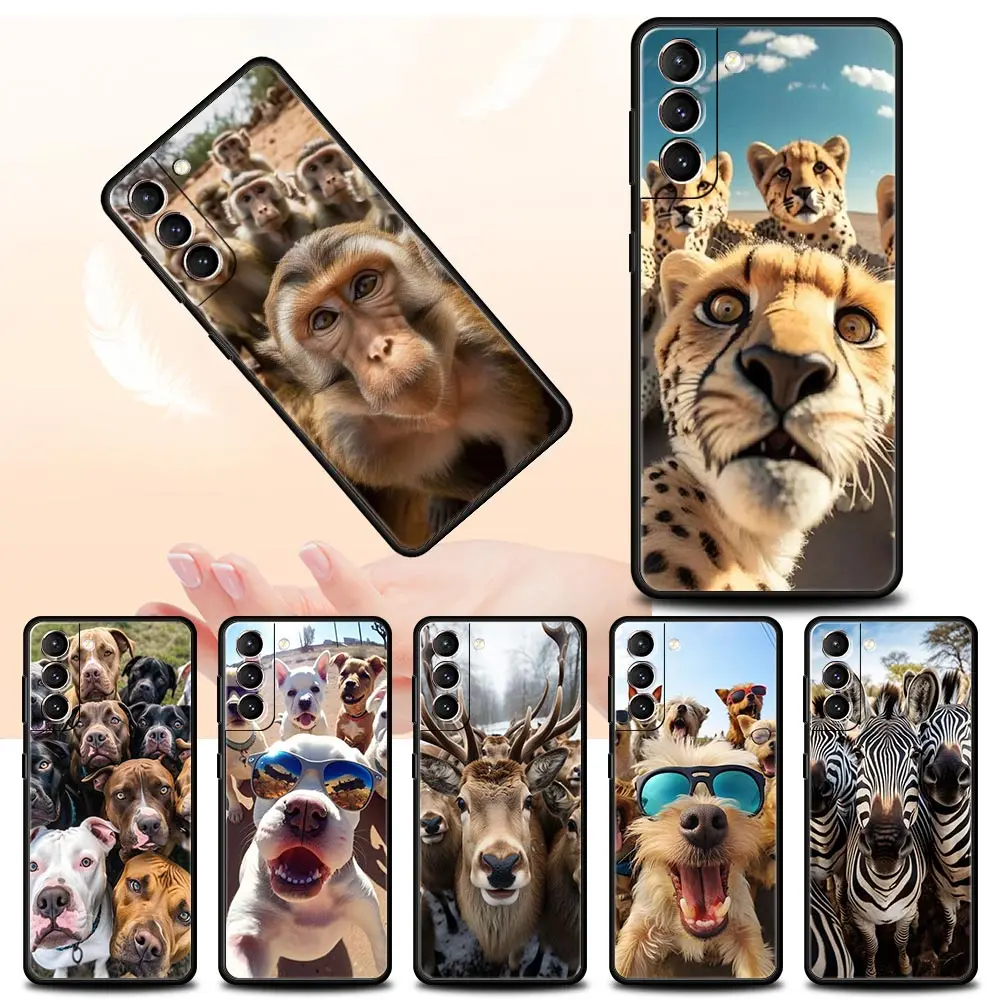 Comprar Funda de teléfono para Samsung Galaxy S24, S23, S22 Ultra, S20, S21 FE, 5G, S10, S9 Plus, S10E, S8, S7 Edge, cubierta de silicona suave, arte de selfie Animal
