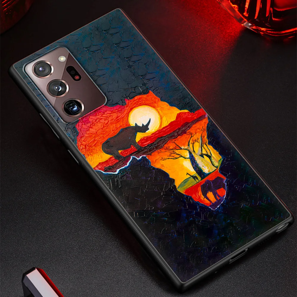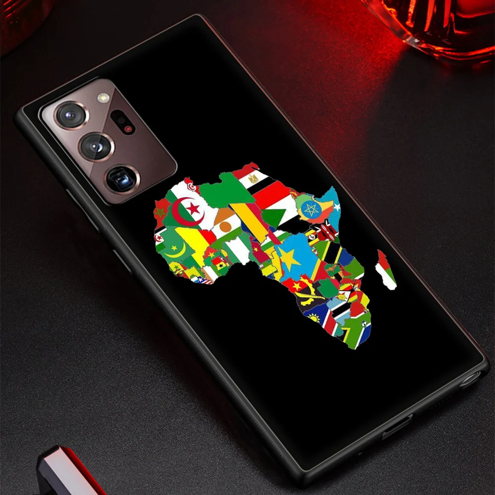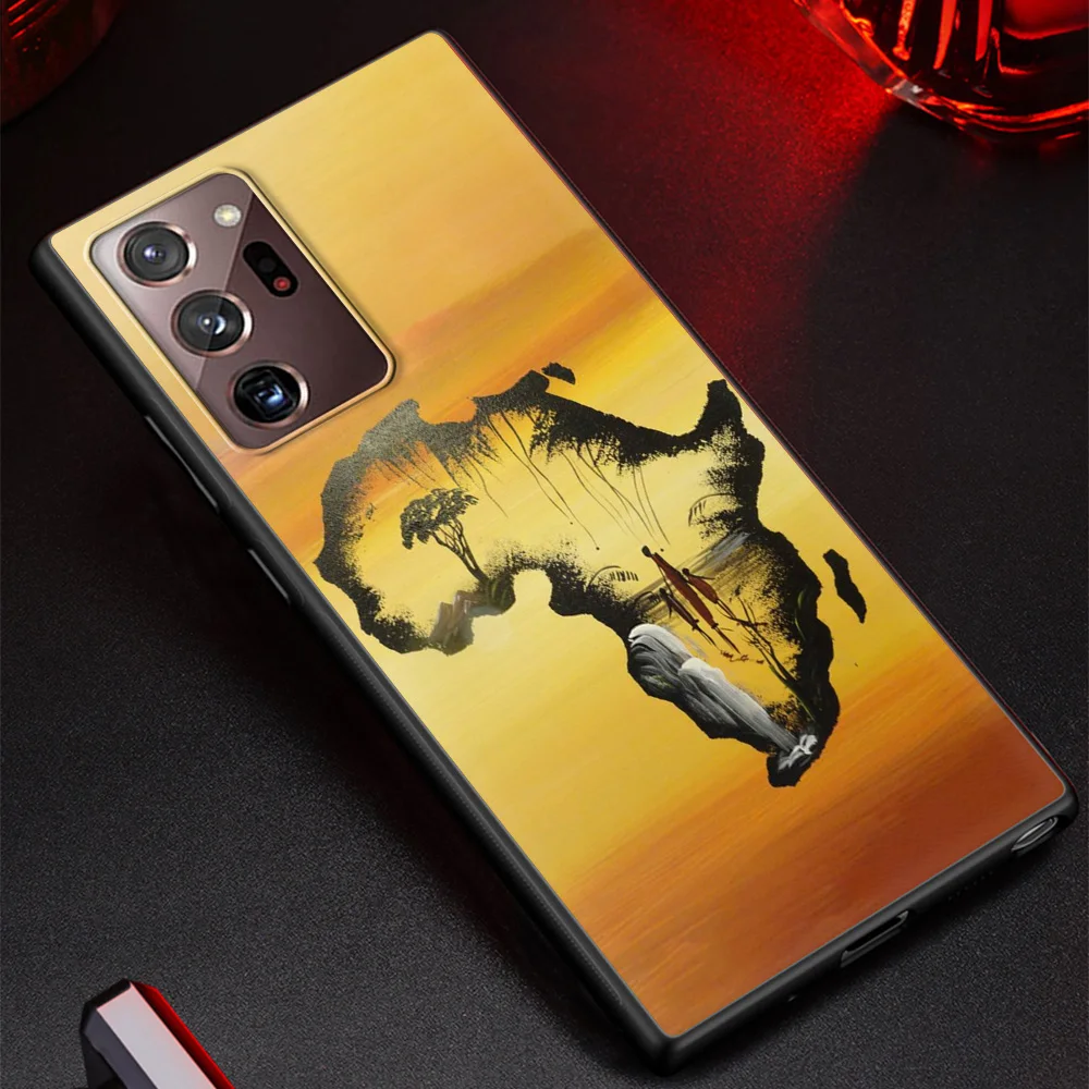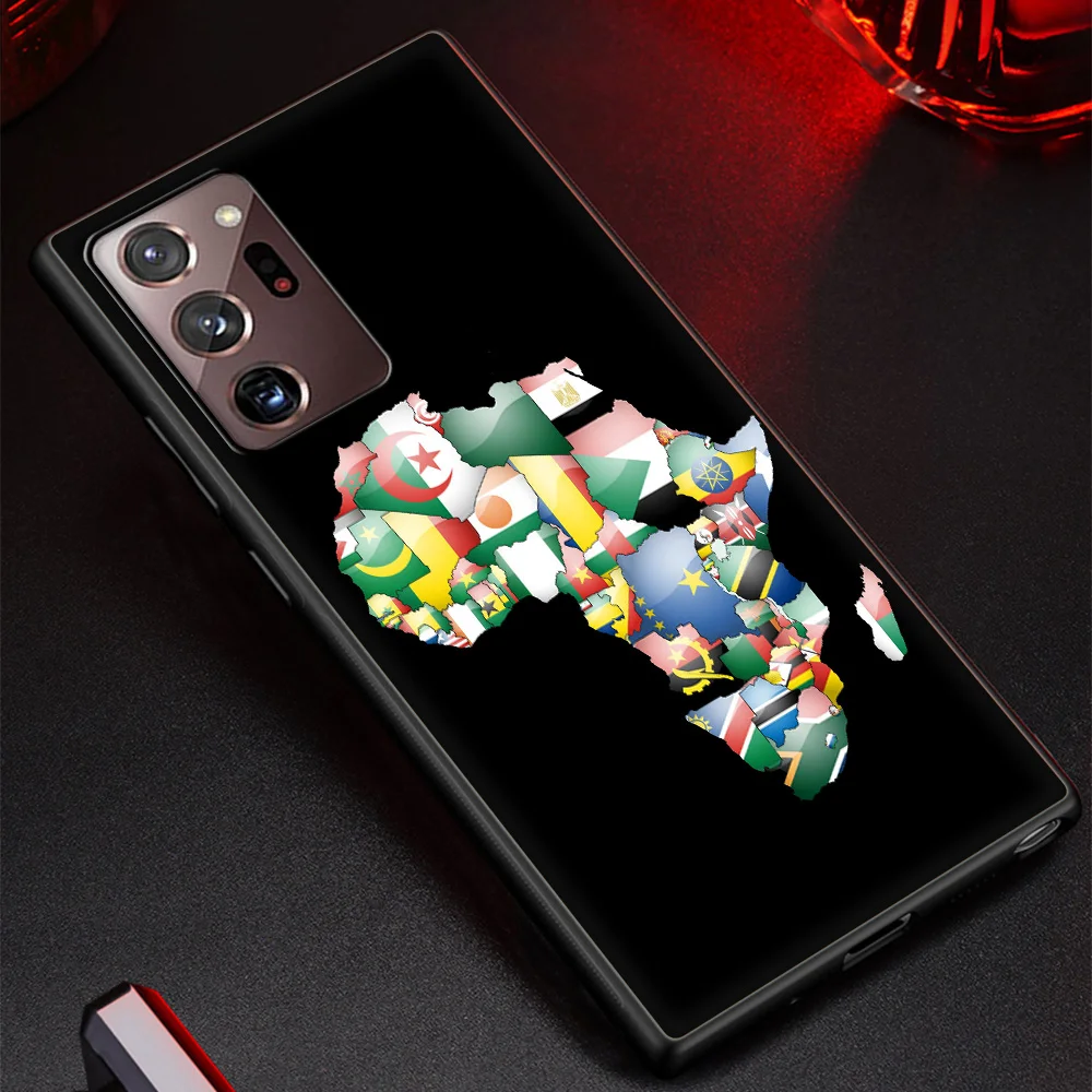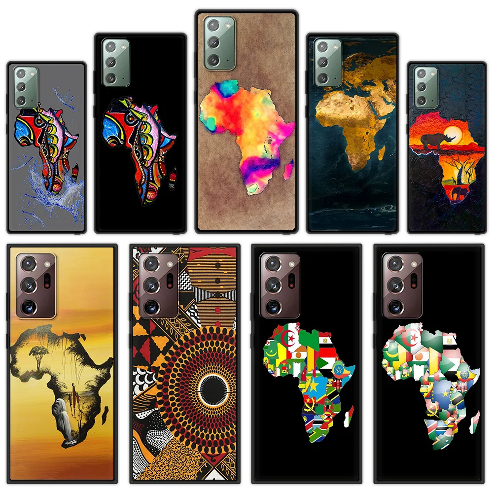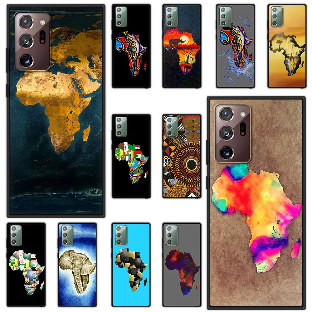 Comprar Funda de teléfono para Samsung Galaxy S24, S23 Ultra, S22, S20 FE, S21, S10, S9 Plus, cubierta negra de silicona, mapa de África, pintada en Geografía