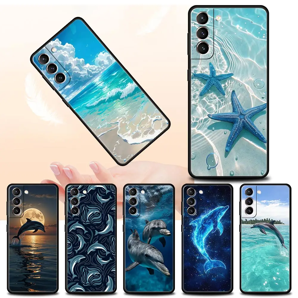 Funda para Teléfono Samsung Galaxy S25 Edge S24 S23 S22 S21 Ultra S20 FE 5G S10 S10E S9 Plus, Cubierta Suave de TPU con Diseño de Delfín Oceánico