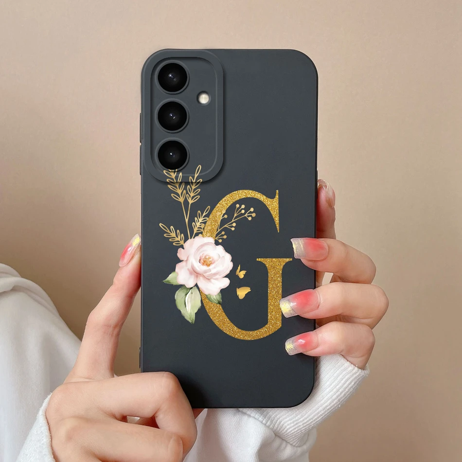 Comprar Funda de teléfono para Samsung S24 Plus Ultra Rose Letter, funda protectora trasera de lente de silicona líquida suave para Galaxy S 24 S24 + S24Ultra