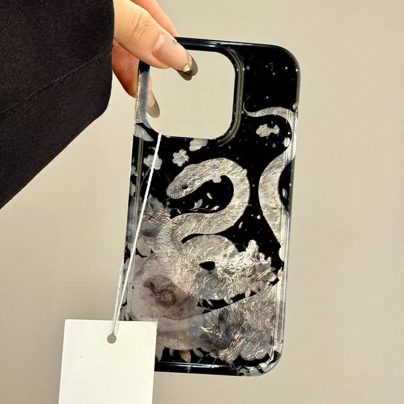 Funda de teléfono de serpiente con purpurina de Año Nuevo de lujo para iPhone 16 15 14 13 12 11 Mini Pro Max X XR XSMax 8 Plus, funda suave con patrón de glaciar